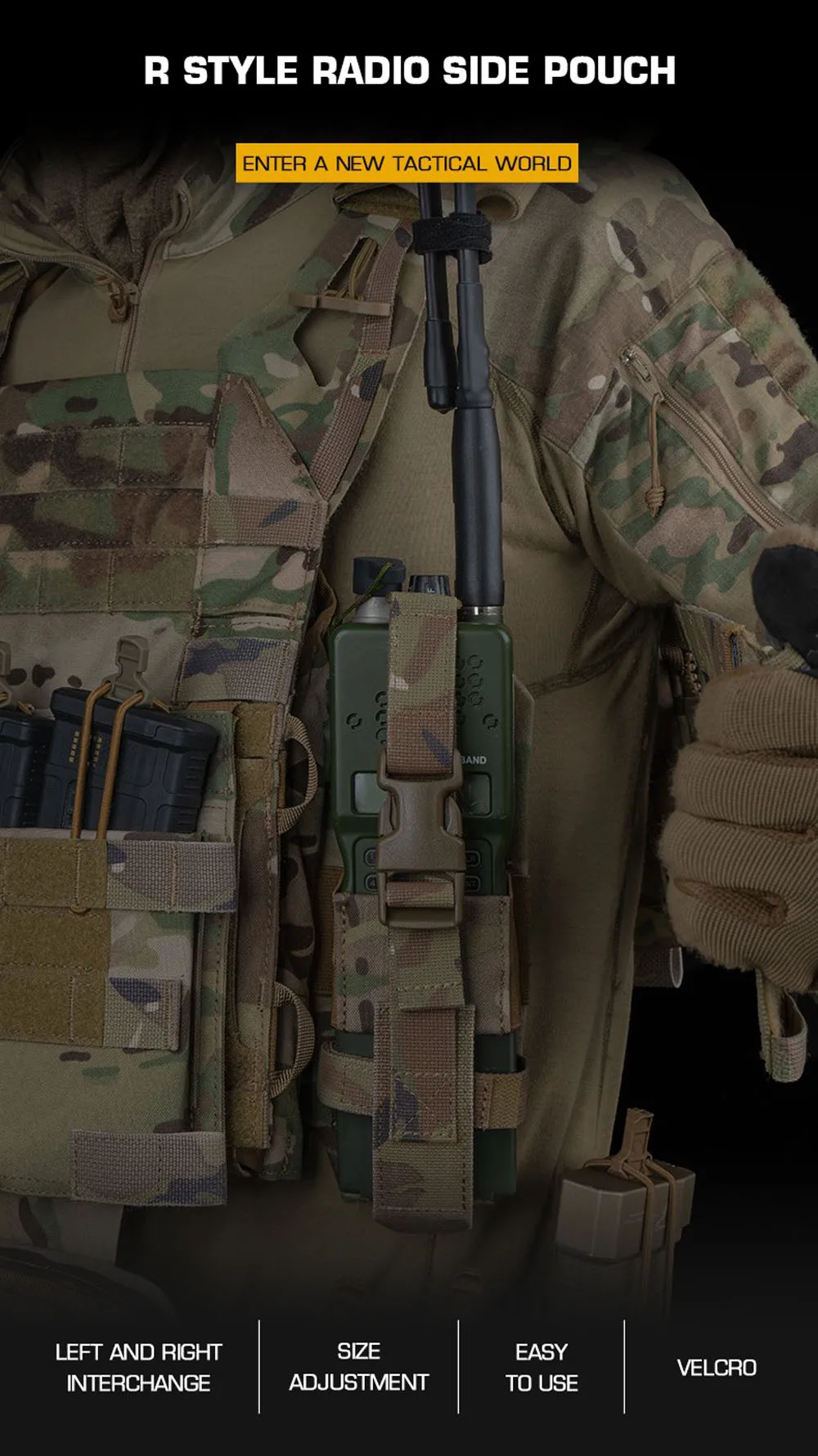 Bolsa de radio táctica estilo R, soporte de walkie talkie ajustable para caza al aire libre, chaleco Airsoft, portador de placa, equipo de almacenamiento para interfono