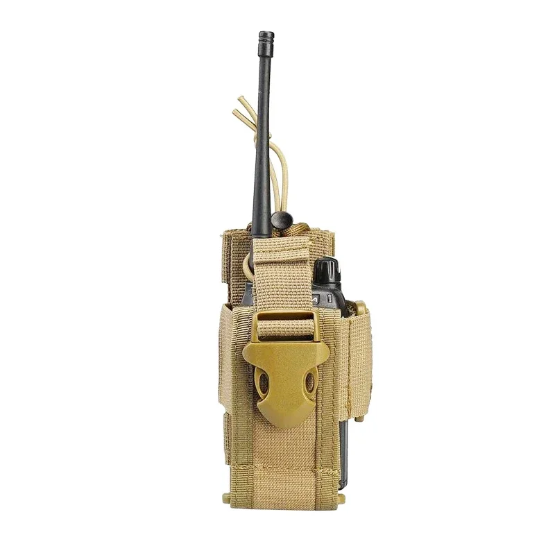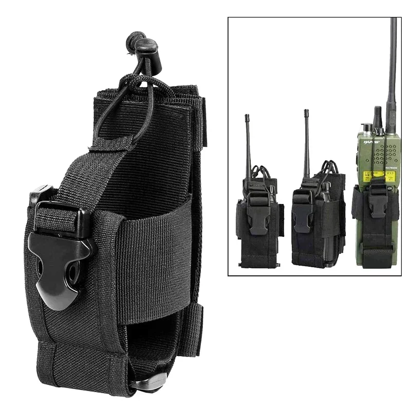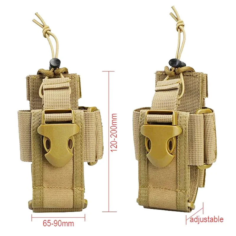 Tamaño ajustable.El rango ajustable más pequeño: 120 mm * 65 mm * 25 mm (4,72" * 2.44" * 1"); El rango máximo ajustable: 200 mm * 99 mm * 38 mm (7,87" * 3,54 " * 1,5"). Funda de radio de nailon fabricada con material de nailon 600D duradero y de alta calidad, caucho muy elástico.estable, fácil y conveniente, resistencia al desgaste; Combinada con la fuerte cuerda de expansión ajustable, la función de cuerda elástica se puede utilizar para abrirla rápidamente; Fácil de sacar la radio y volver a ponerla; Estuche portaradio multifuncional, bolsa de herramientas de almacenamiento ajustable; Funda de radio bidireccional de tamaño ajustable; Sistema MOLLE, fácil de colocar en chalecos, mochilas y cinturones con correas MOLLE. Orificio de drenaje; El paquete incluye: 1 * bolsa táctica para radio