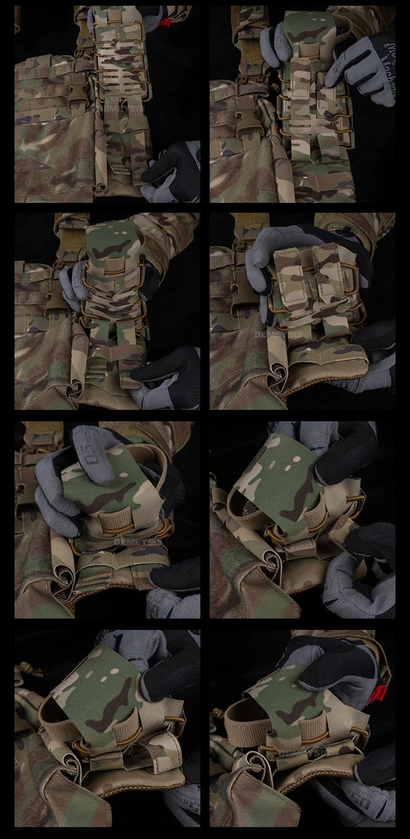 ✅ Accesorio MOLLE instantáneo – Se fija a chalecos/cinturones en 3 segundos