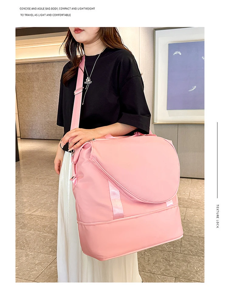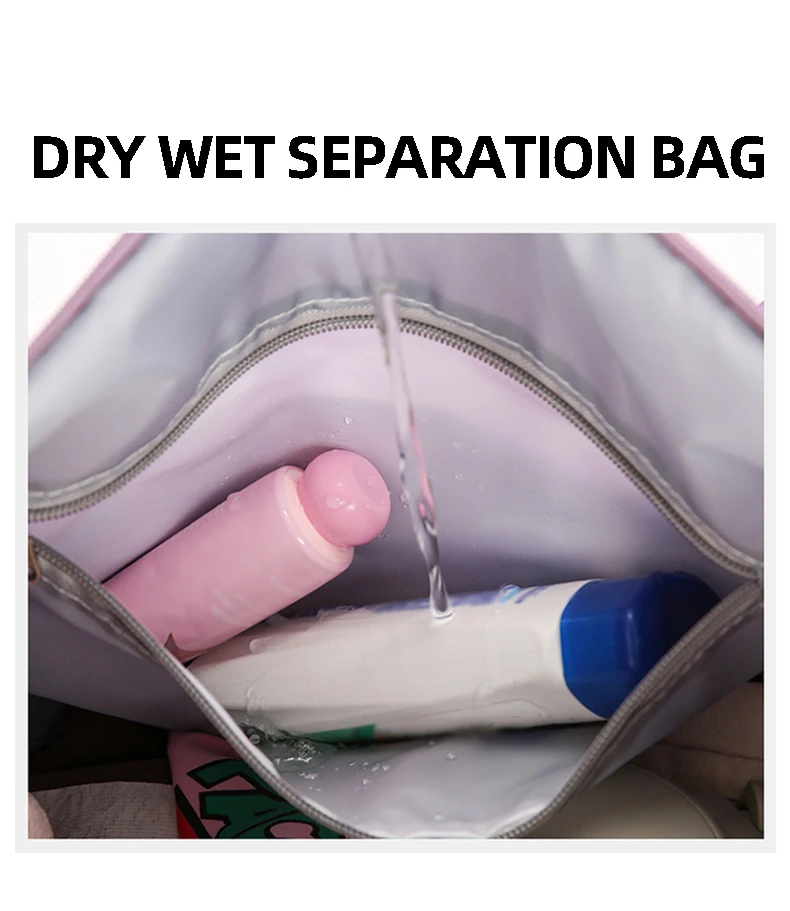 4.Bolsa de separación húmeda y seca, puede almacenar toallas, sudor de ropa mojada, etc., limpia e higiénica
