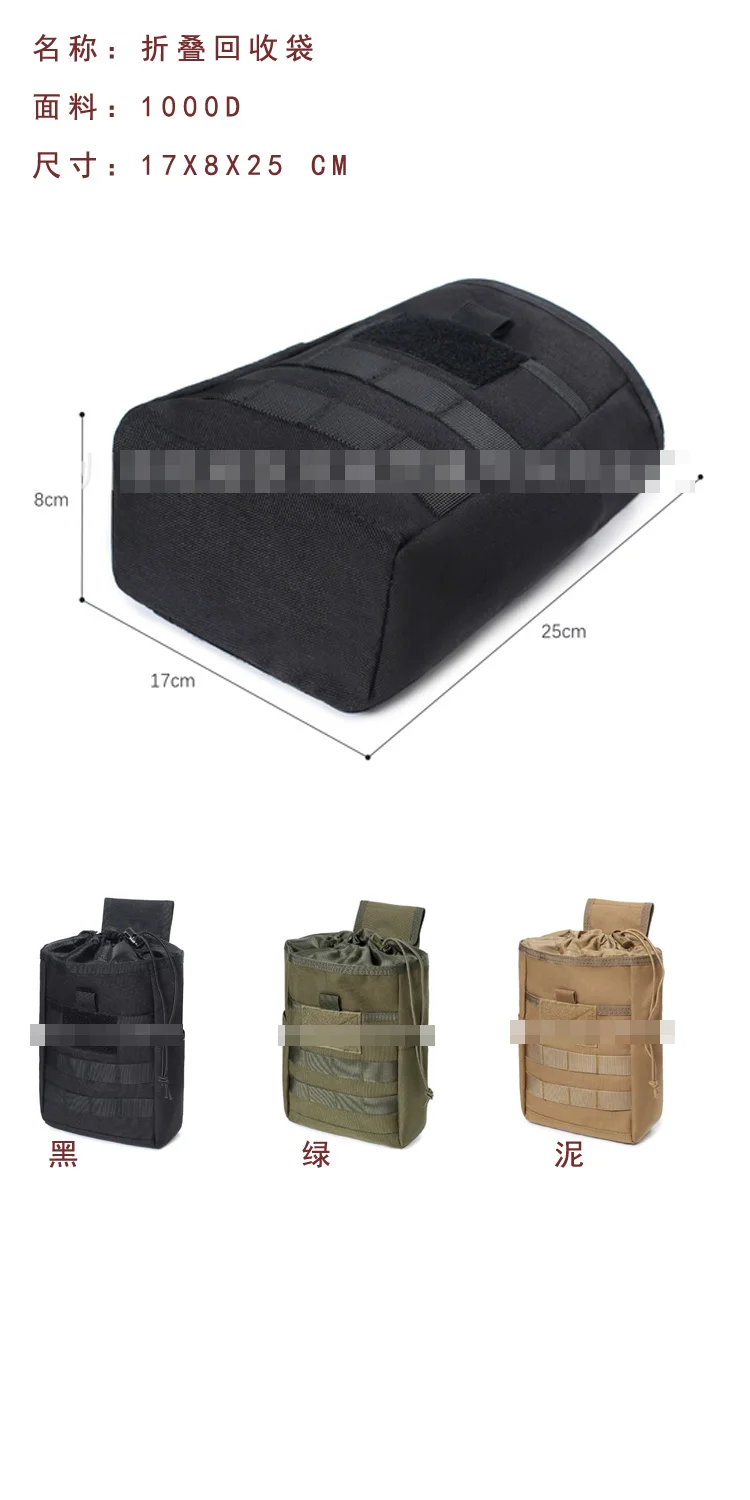 Bolsa de reciclaje plegable táctica 1000D, bolsa de almacenamiento de artículos diversos, Molle, cintura pequeña multifuncional