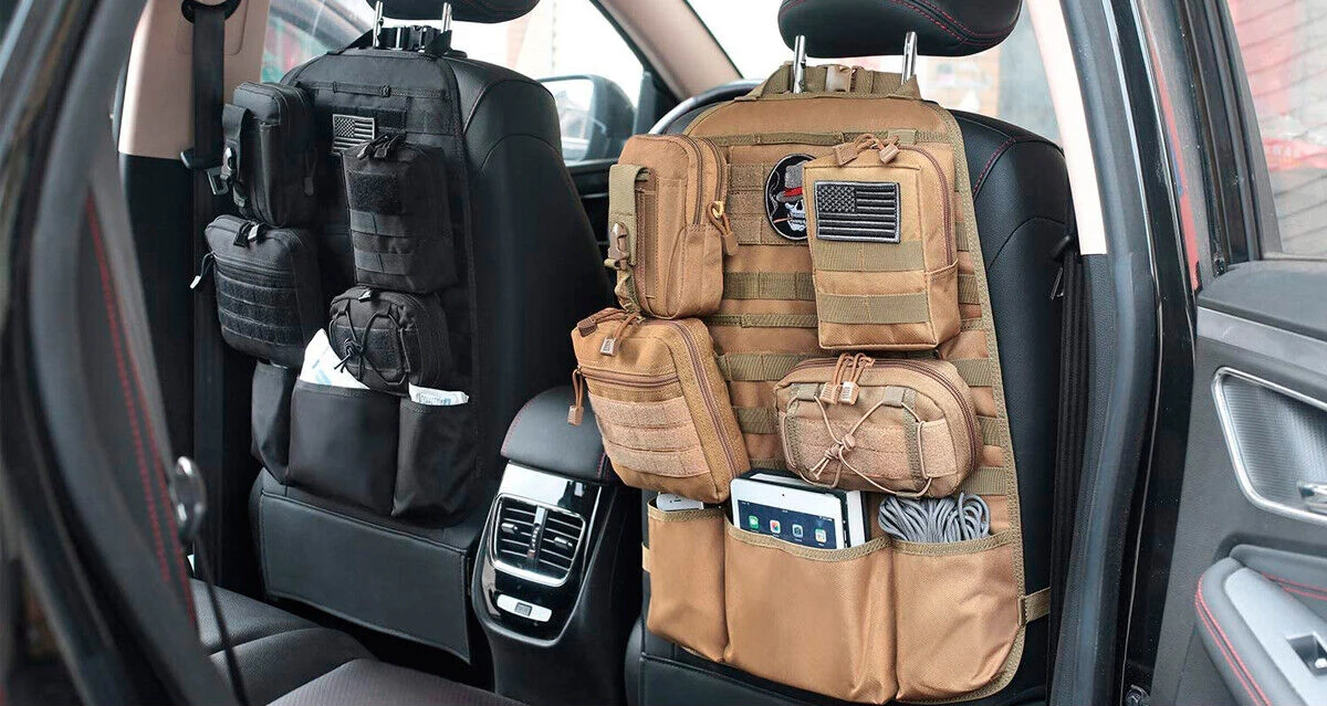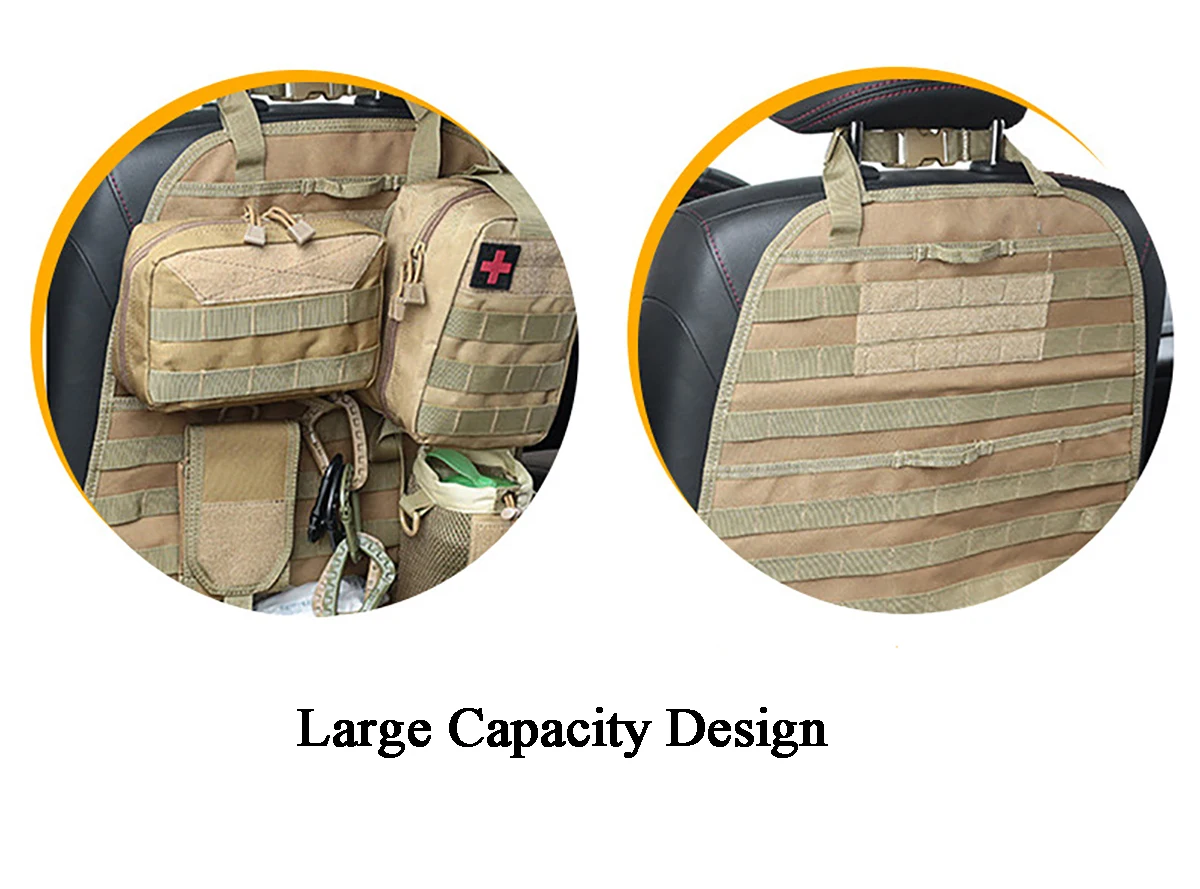 ➤ El bolsillo trasero del asiento del automóvil está diseñado con un sistema Molle que permite agregar diferentes artículos a la bolsa para expandir el espacio del usuario.
