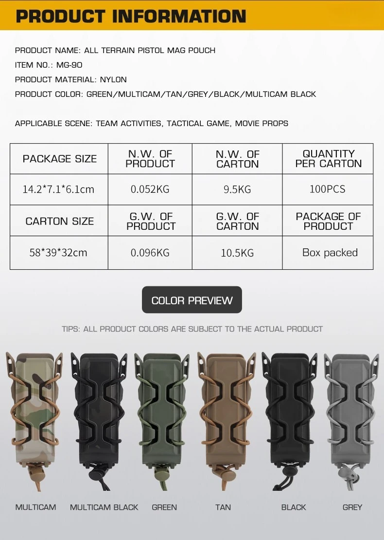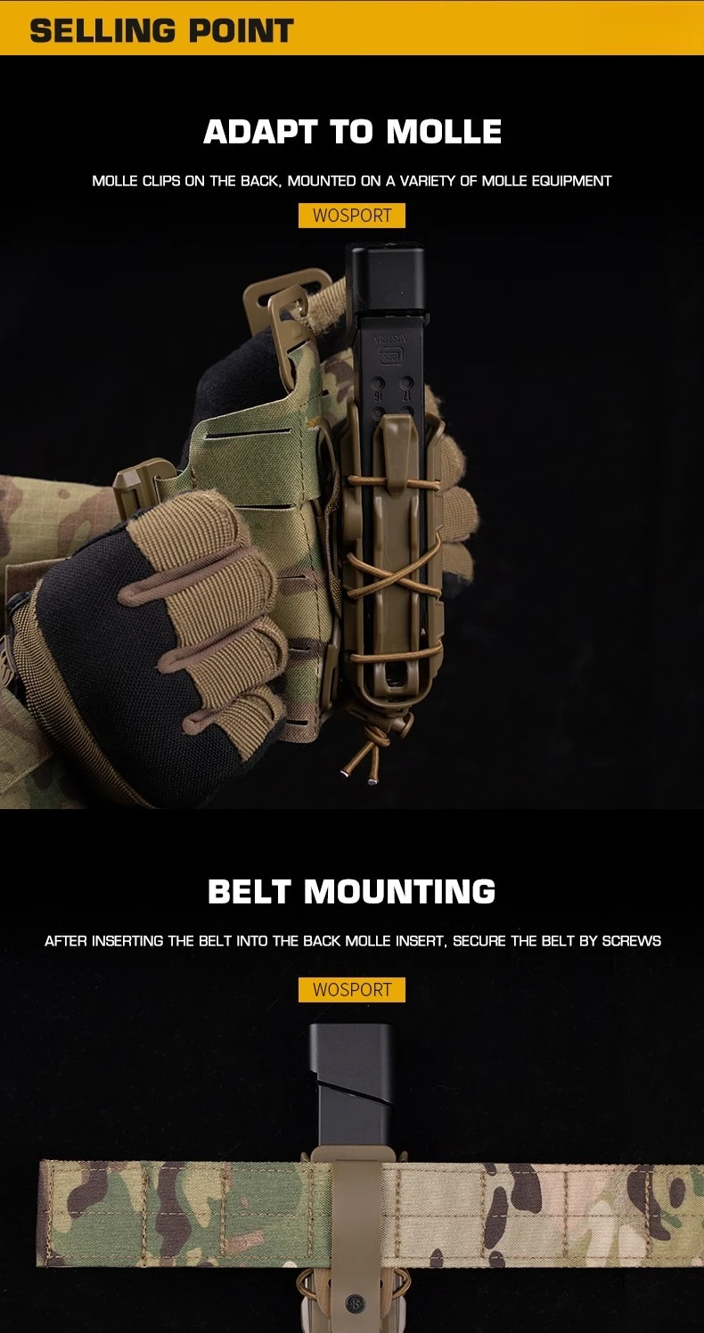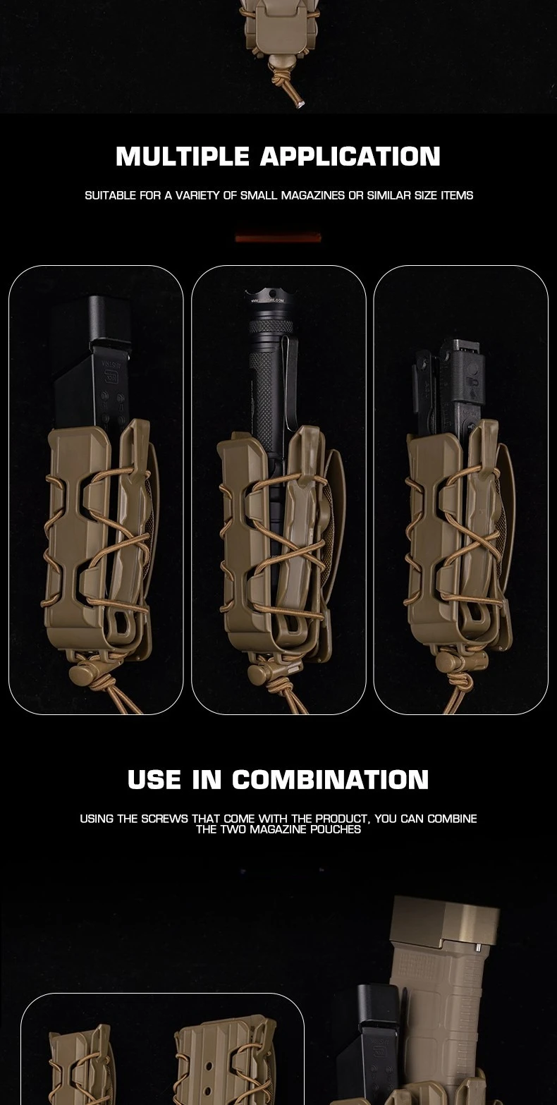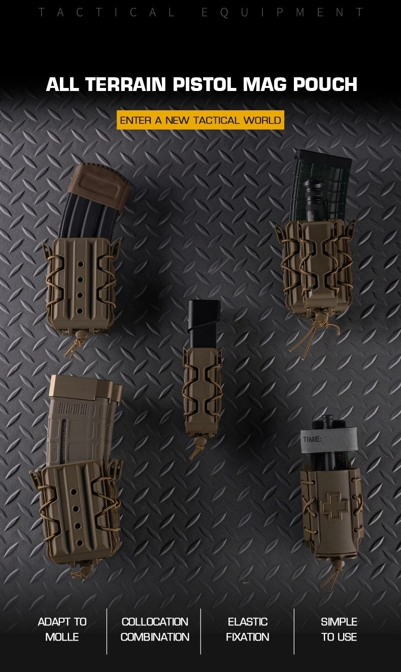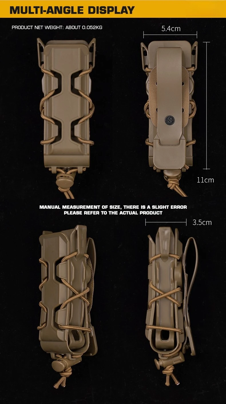 Bolsa para revistas de 9mm, cordón elástico ajustable para exteriores, funda para revistas Molle de caza y tiro de expansión de 9mm/45acp