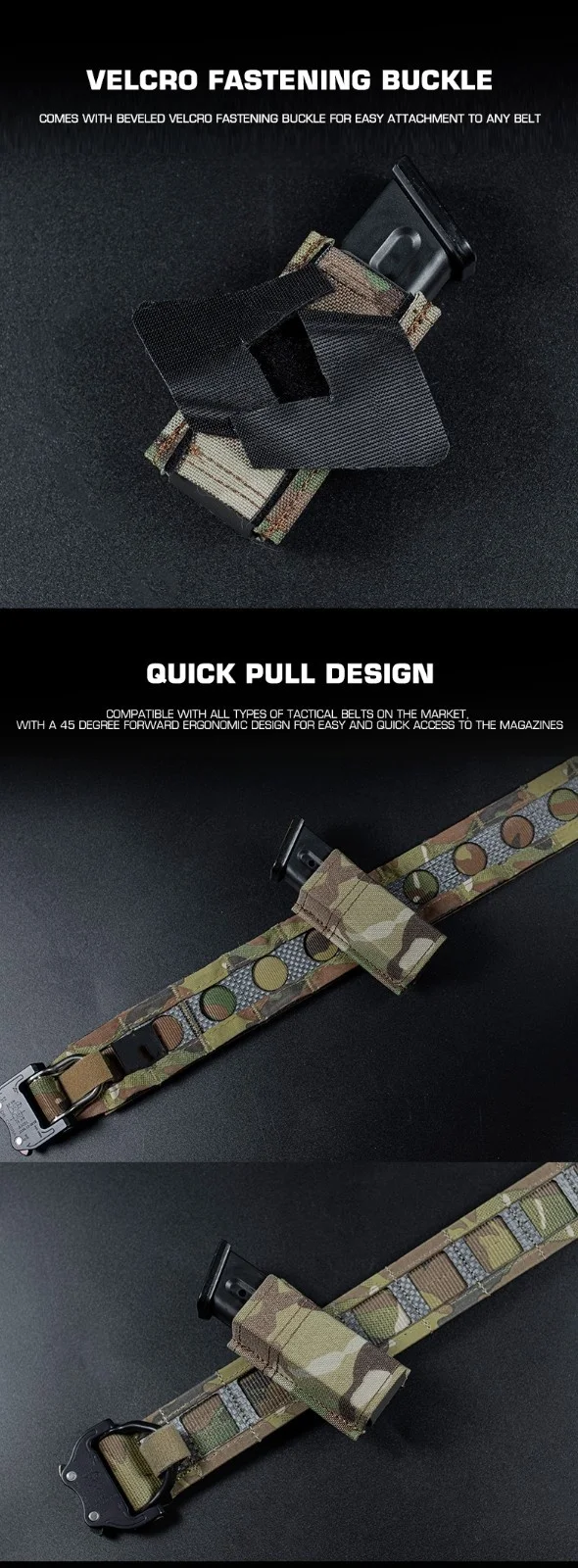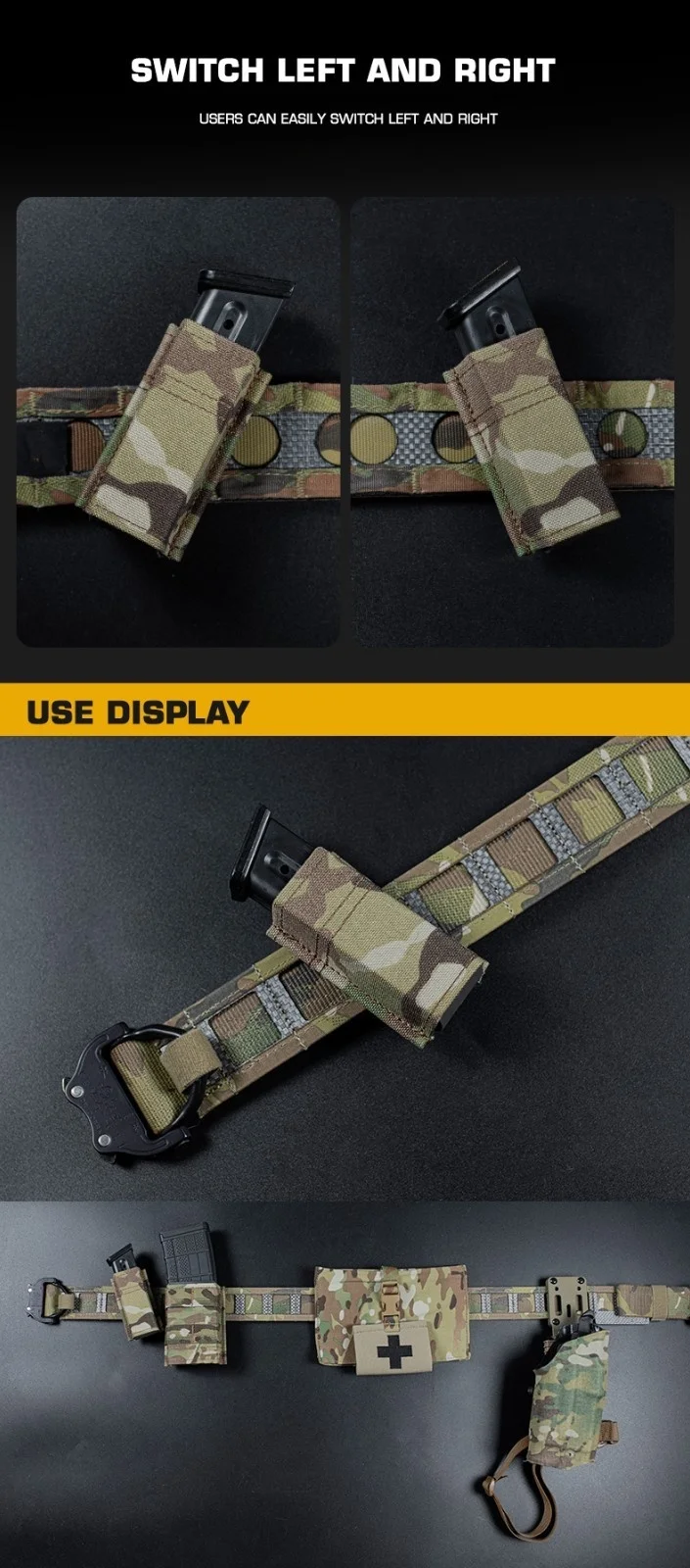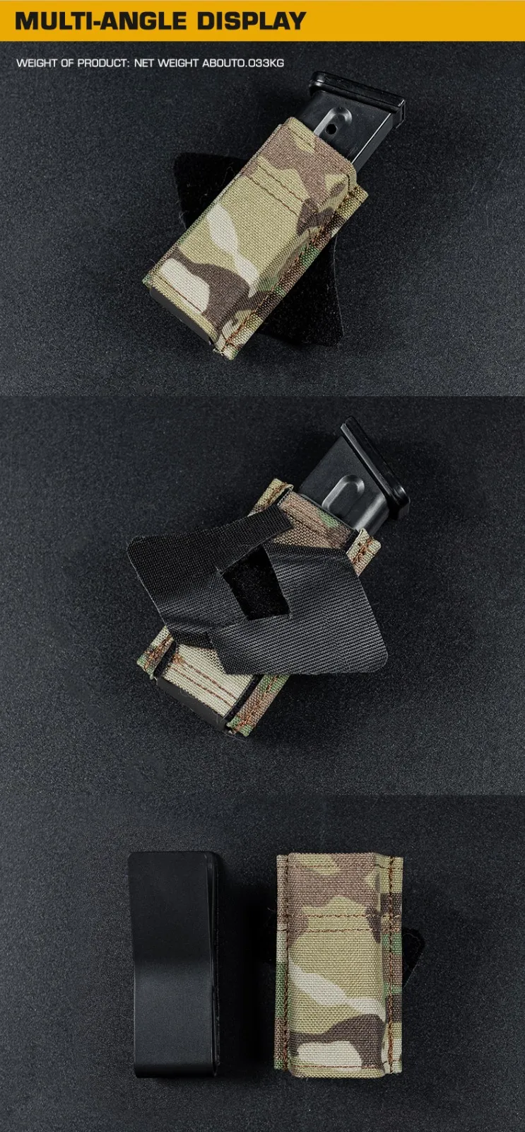 Bolsa para revistas ajustable de 9 mm | Portador MOLLE multiposición | Soporte delgado para un solo mag