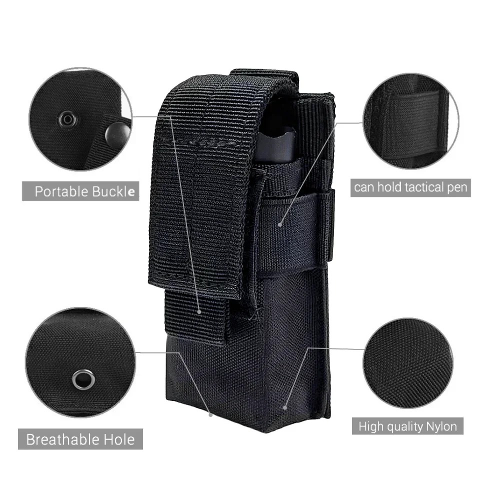 2.Diseño del sistema Molle. La bolsa para cargador de pistola única Molle también se puede colocar en el chaleco, el cinturón o la mochila.