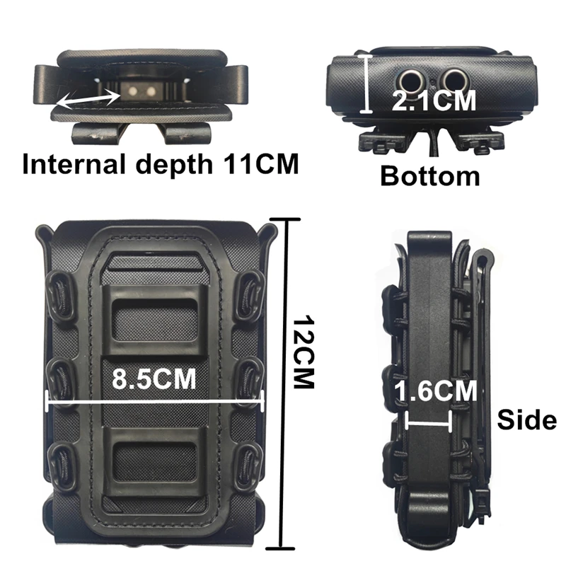 • Soporte Mag universal: Esta bolsa para revistas está diseñada para ser universal, se adapta a revistas de 5,56mm y 7,62mm. Es perfecto para todo tipo de usuarios de armas de fuego.
