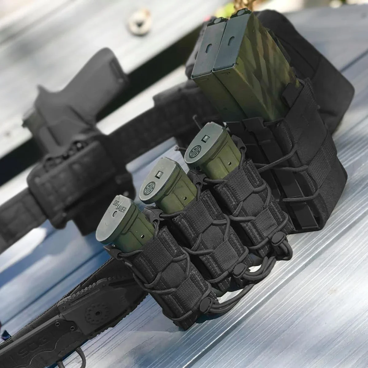 Bolsa para revistas corta de triple liberación rápida estilo tigreColor: negro, verde, cp tostadoPeso: 150 g