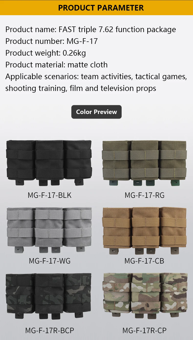Bolsa para revistas Fast AK Triple 7,62, funda multifuncional de extracción rápida, accesorios tácticos de balas suaves, sistema de inserción MOLLE