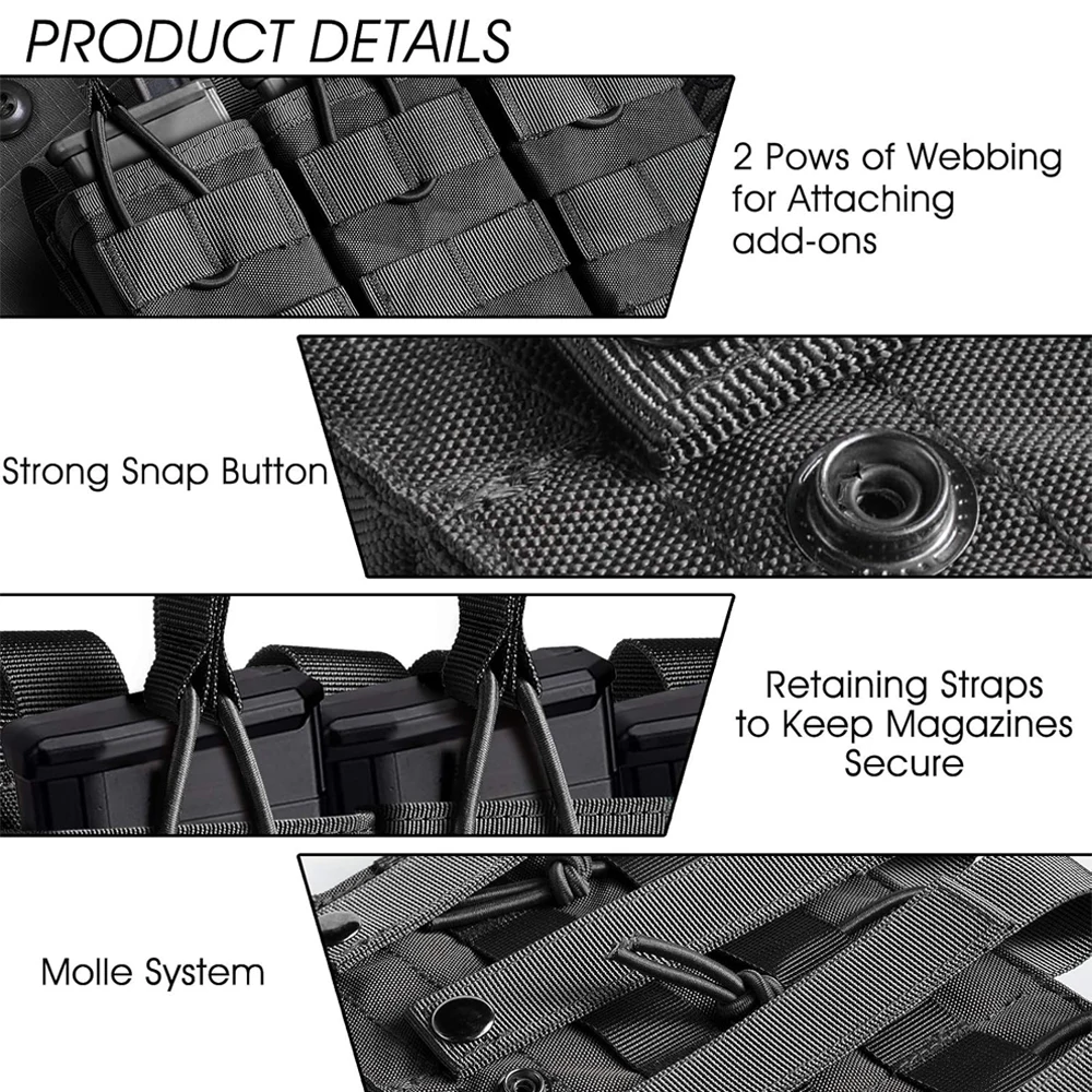 El soporte magnético tiene 4 bucles a presión MOLLE, totalmente compatible con todos los equipos MOLLE estándar, fácil fijación a sus chalecos, estuches para rifles, bolsos, cinturones y cualquier plataforma MOLLE.
