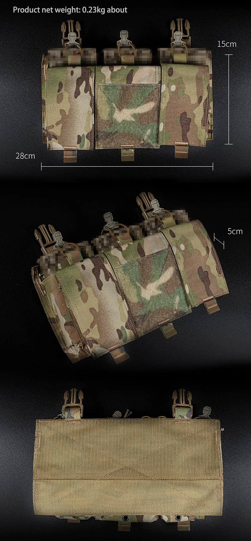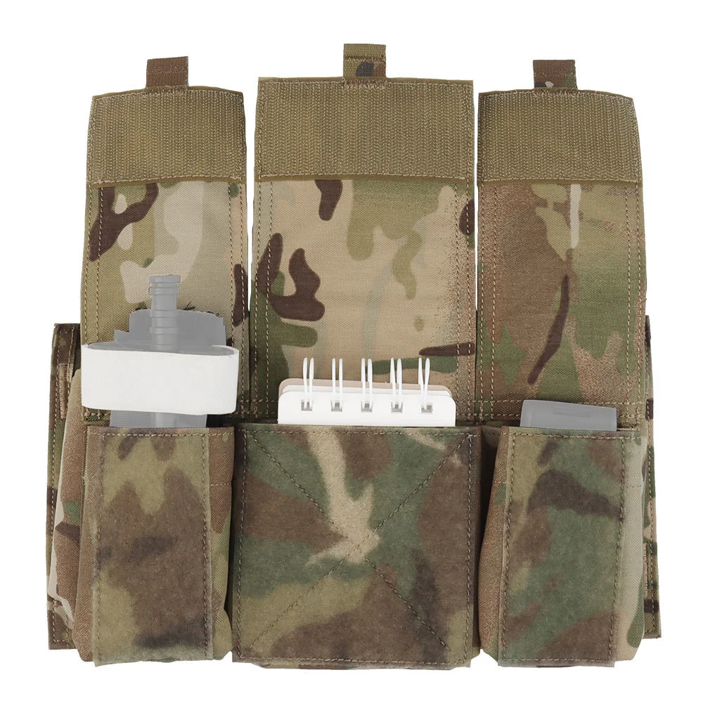 La bolsa puede contener hasta tres cargadores de 7,62x51 y cuenta con un sistema de retención de cuerdas de choque ajustable para mantenerlos seguros.