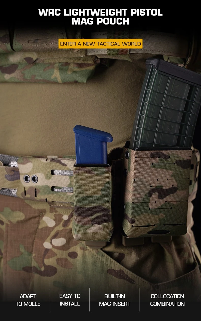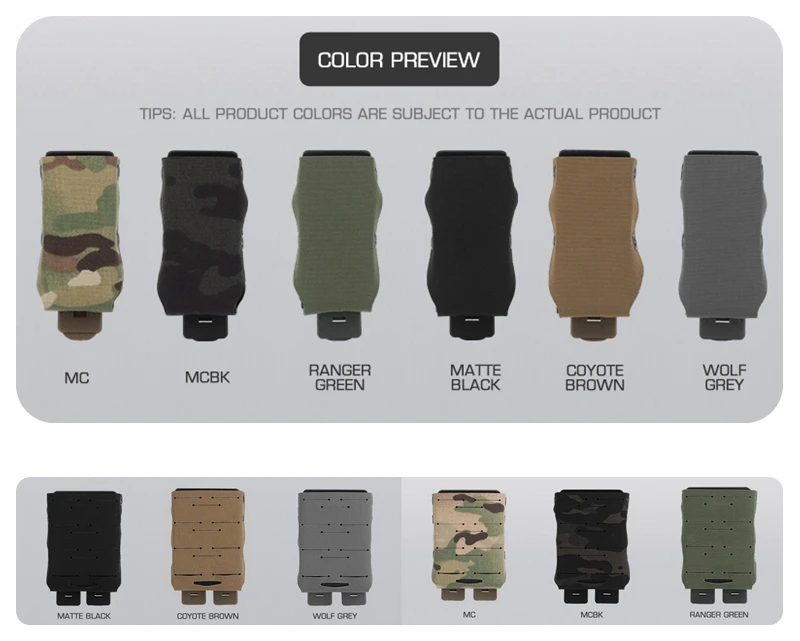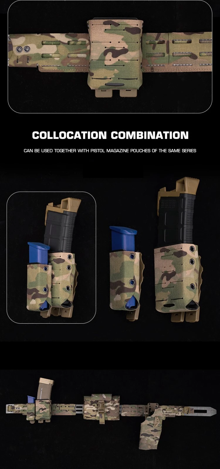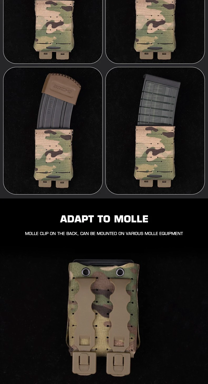 La parte posterior molle se engancha a cualquier sistema molle o amigo, como chaleco, espalda, cinturón;
