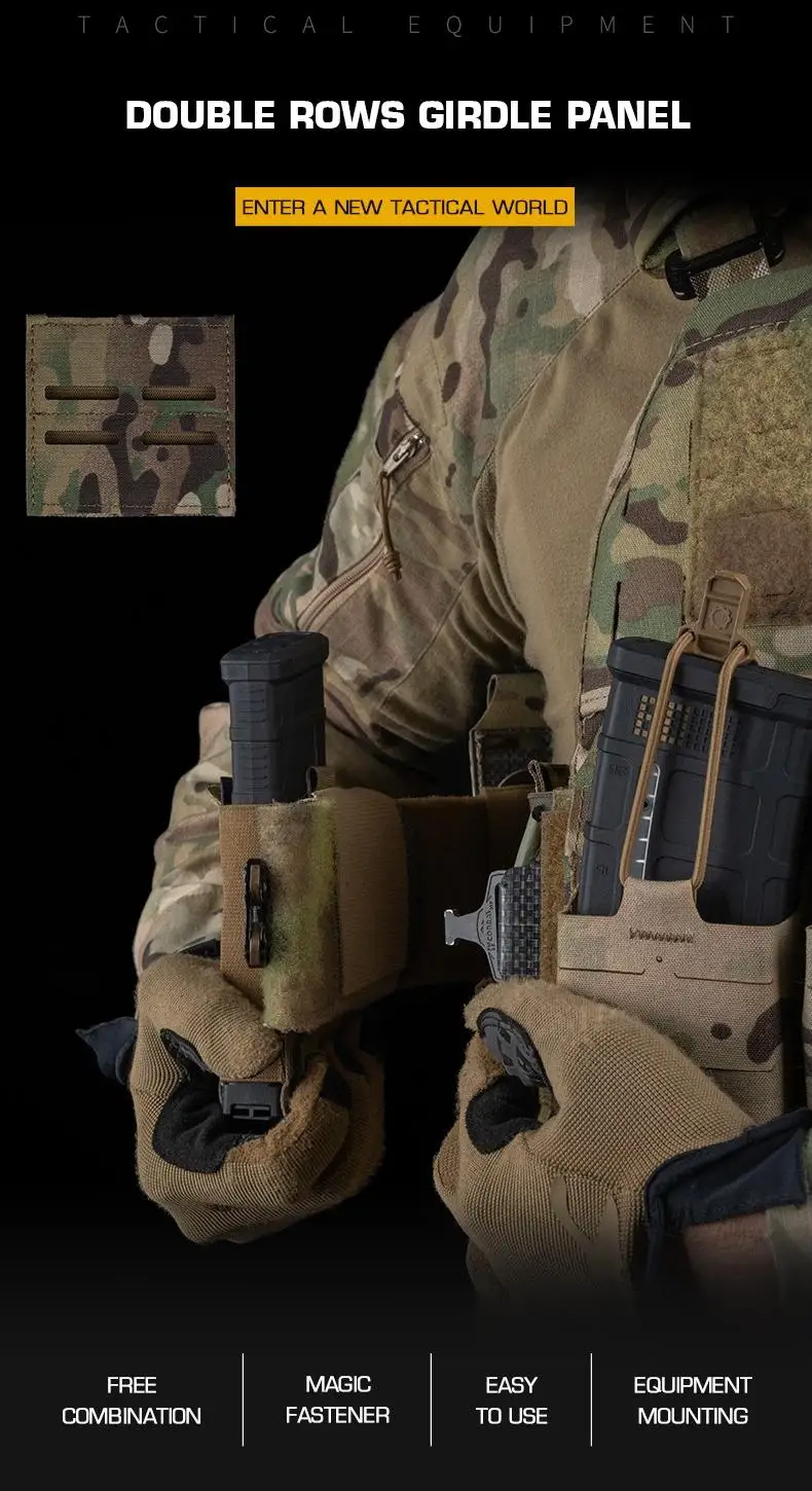 Bolsa para revistas, sistema de inserción de cuchillos, adaptador Molle para cinturón, paneles Molle extraíbles, faja de doble fila, bolsa Molle