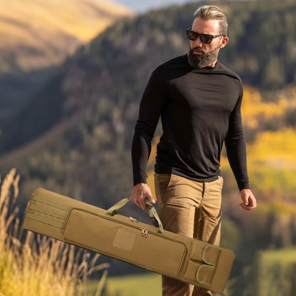 Hecho de material de nailon de alta calidad, el material de alto rendimiento bloquea la lluvia y la humedad, protegiendo armas de fuego y equipos contra daños en condiciones duras.