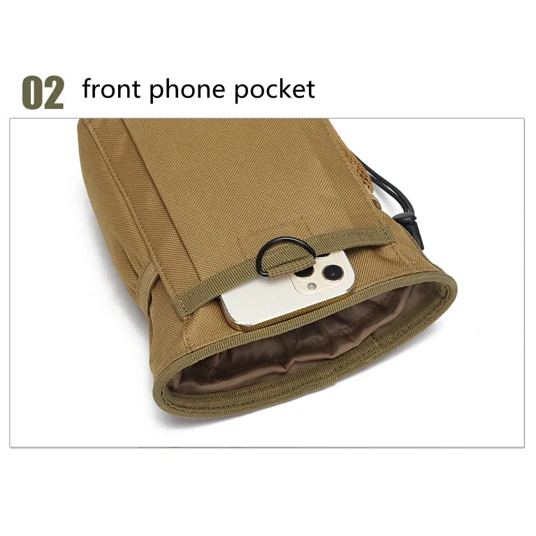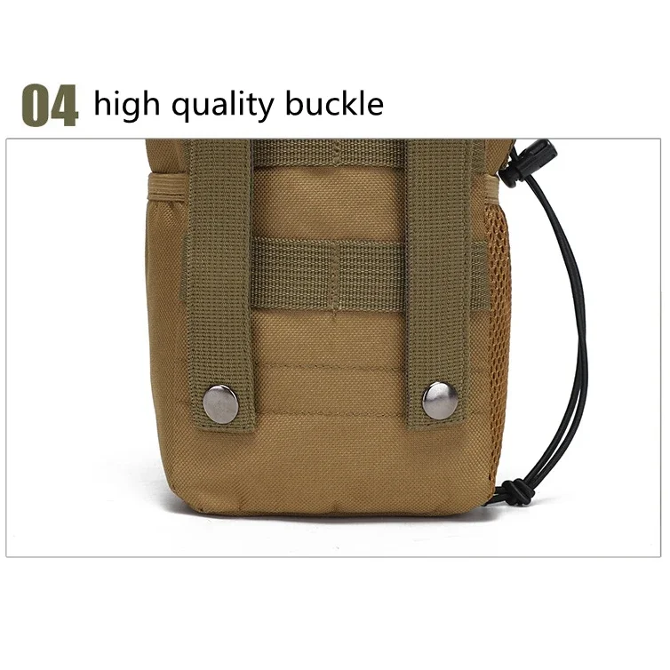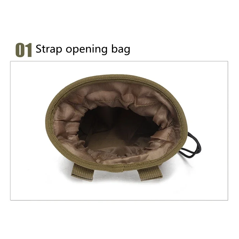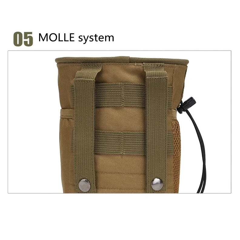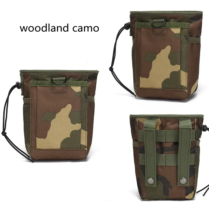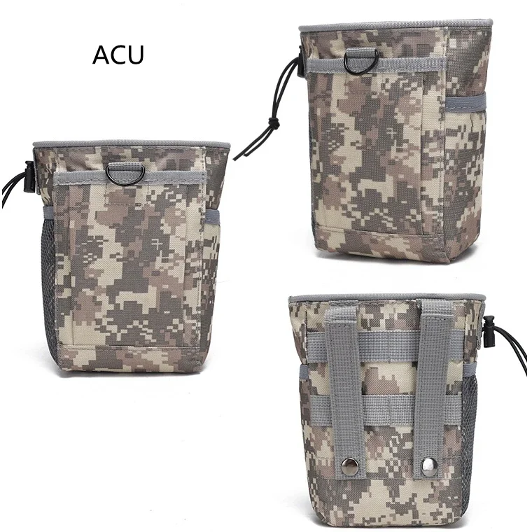 Construido con material de nailonCapaz de acoplarse a cualquier chaleco, bolso, cinturón de servicio o mochila con correas MolleCon bolsillo interior con velcro en V y bolsillo exterior.Con un bolsillo de malla en un lado, el otro lado con un bolsillo para linterna u otros artículos.Durabilidad robusta y resistencia ligeraLa bolsa abatible es esencial para mejorar la velocidad del cambio de cargador.La apertura con cordones y el cordón de sujeción fácil de tirar hacen que sea fácil cerrar y abrir la bolsa con una mano.Especificación:Color: ACU, verde, negro, camuflaje de bosque, tostadoMaterial: nailon 600D