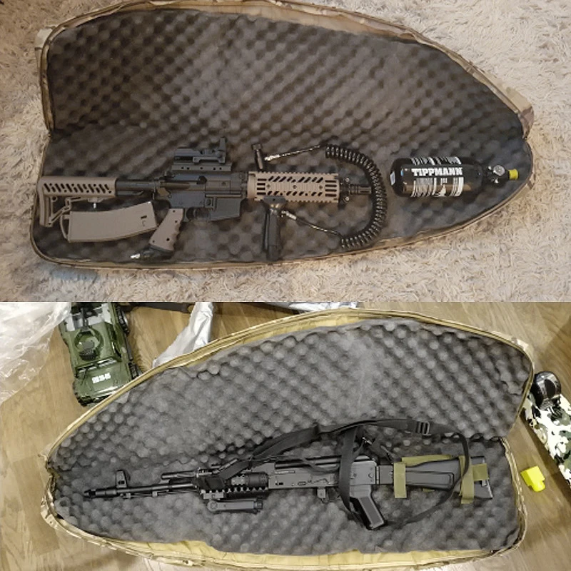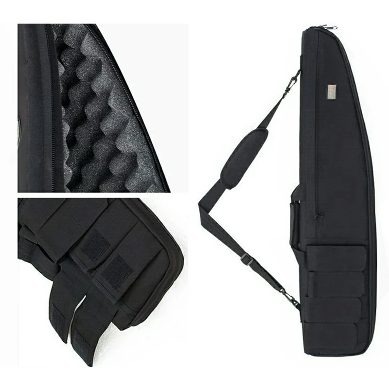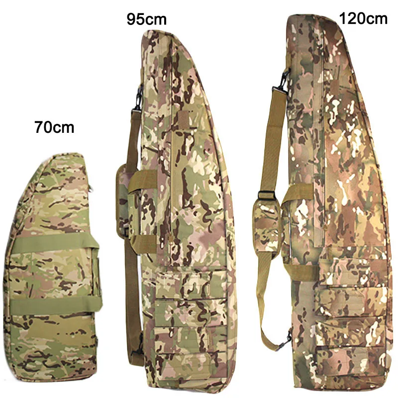 Tipo: Mochila De caza táctica Material: nailon Color: negro/marrón/verde Tamaño: 70cm/95cm/120cm (opcional) Características: Bolsa de Rifle doble, portátil, bolsa de pistola larga 1. Hecho de materiales de alta densidad y alta calidad 2. Puede acomodar 2 rifles y muchos bolsillos 3. Apto para una variedad de rifles airsofts de rifle de francotirador 4. La partición interior gruesa protege eficazmente las pistolas de lesiones durante el ejercicio