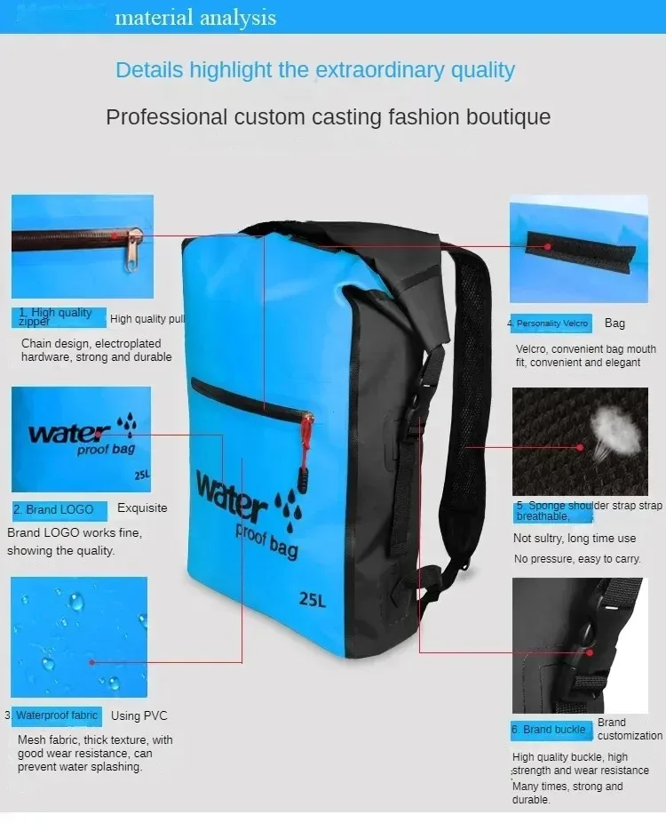 Bolsa seca impermeable de 25L, mochila de natación, mochila, mochila flotante de agua, deporte, canoa, kayak, Rafting, navegación, senderismo en río