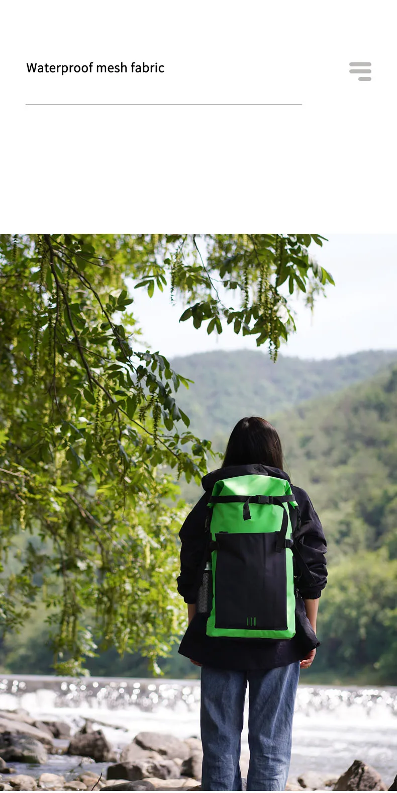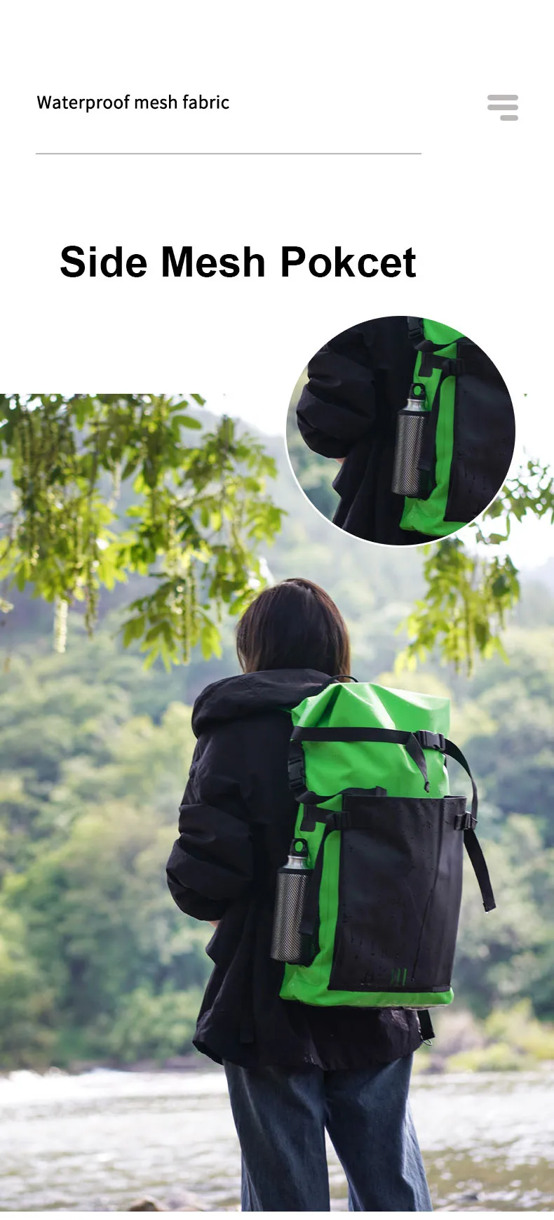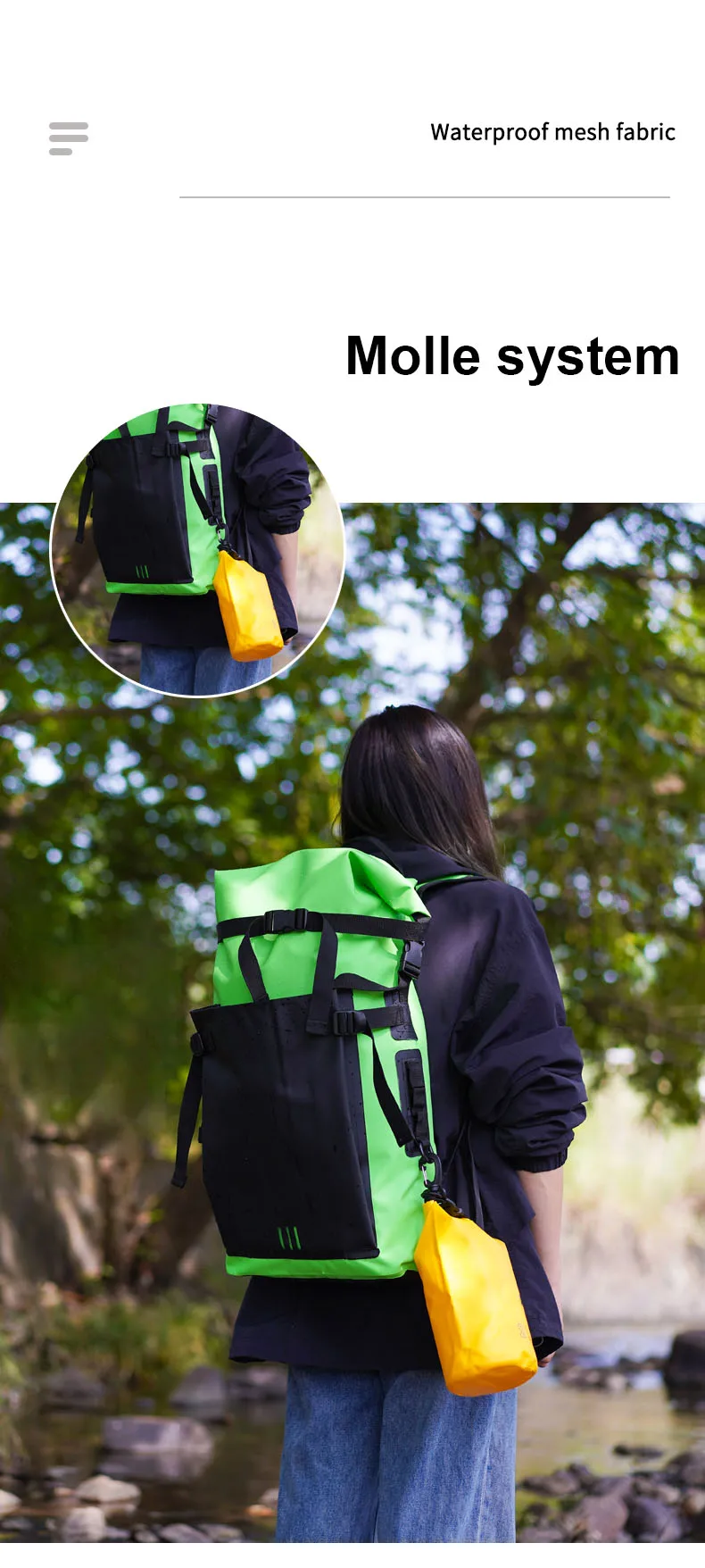 500D waterproof guarantee: applied 500D PVC high-frequency welded seams material, 30L newly dry bag backpack has strong waterproof, dust proof and tear proof performing. Water drop design of outer pouch makes this dry bag novel and special. The dry backpack is double reinforced at all the major pressure points so that it's durable enough and wear-resistant. Would absolutely be your ideal choice for any water environment you may encounter!