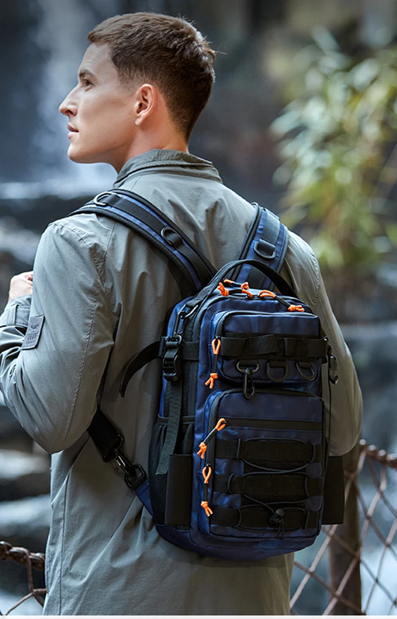 Bolsa de señuelos de pesca al aire libre, mochila táctica para escalada, caza, Camping con soporte para caña, paquete multifuncional Molle de gran capacidad