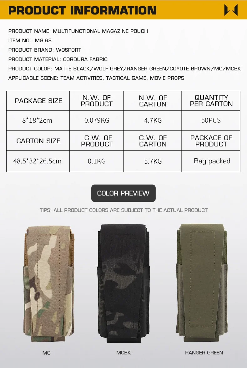 Tipo: Bolsa para revistas multifunción Peso neto: alrededor de 0,079 kg Material: Cordura Tamaño: Tamaño: como se muestra en la imagen de arriba, permita un error de ±1 cm