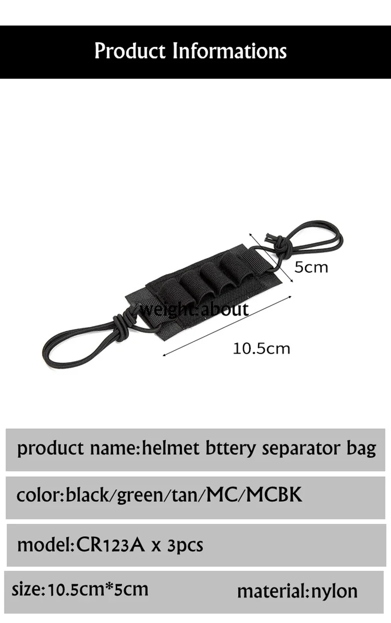 Bolsa de tablero de almacenamiento de batería elástica con cordón NVG para casco táctico, dispositivo de visión nocturna CR123A, correa fija