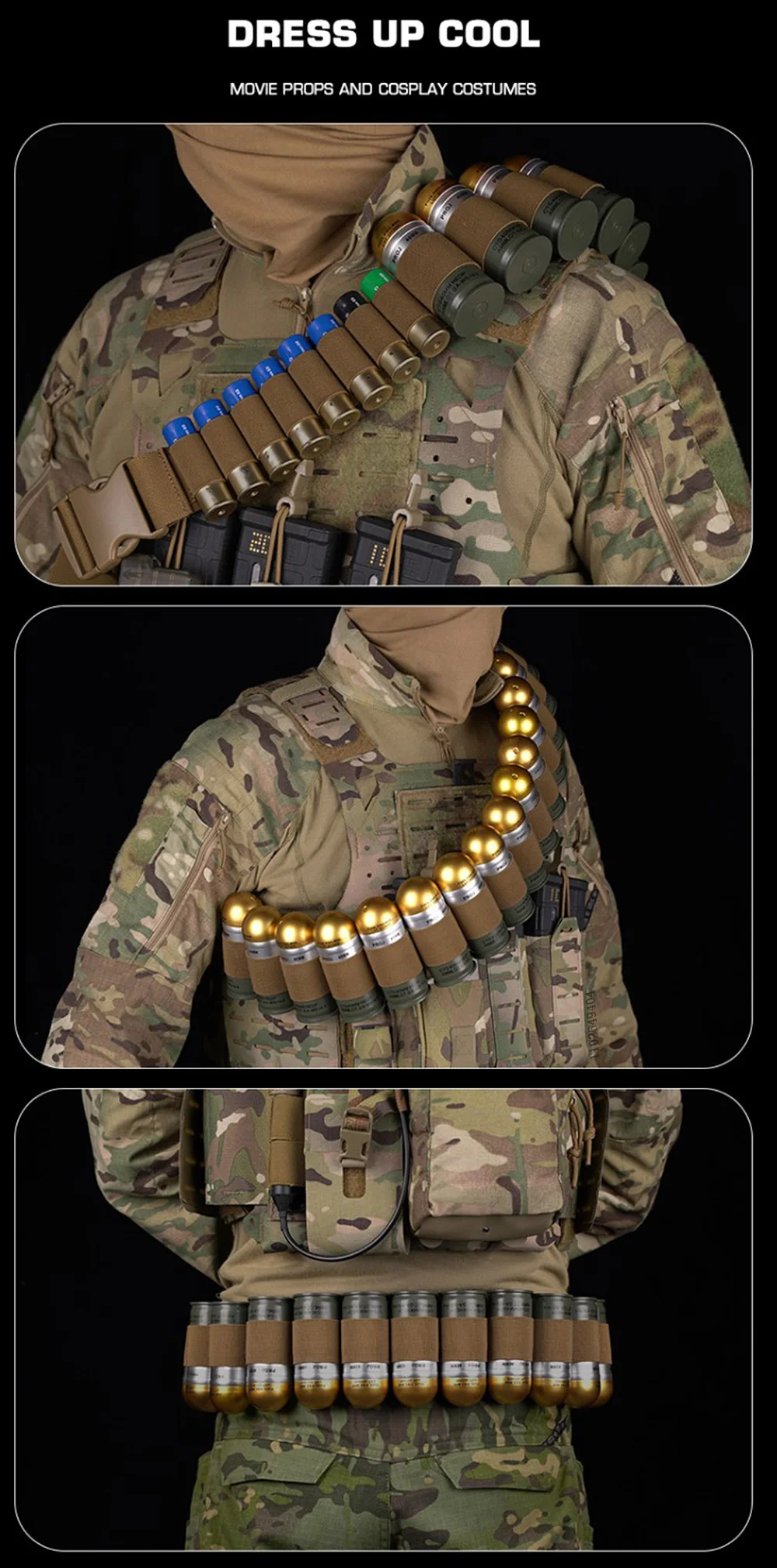 ※ Esta bandolera está diseñada para llevar 16 granadas y ocho cartuchos de escopeta.
