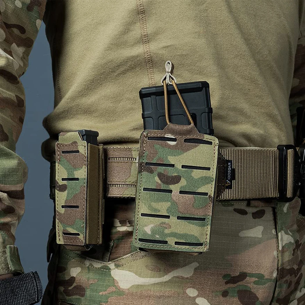 EASY ACCESS: Single open top magazine pouch with adjustable bungee pulls design. The bungee pulls can effectively fix the magazine when you combat.