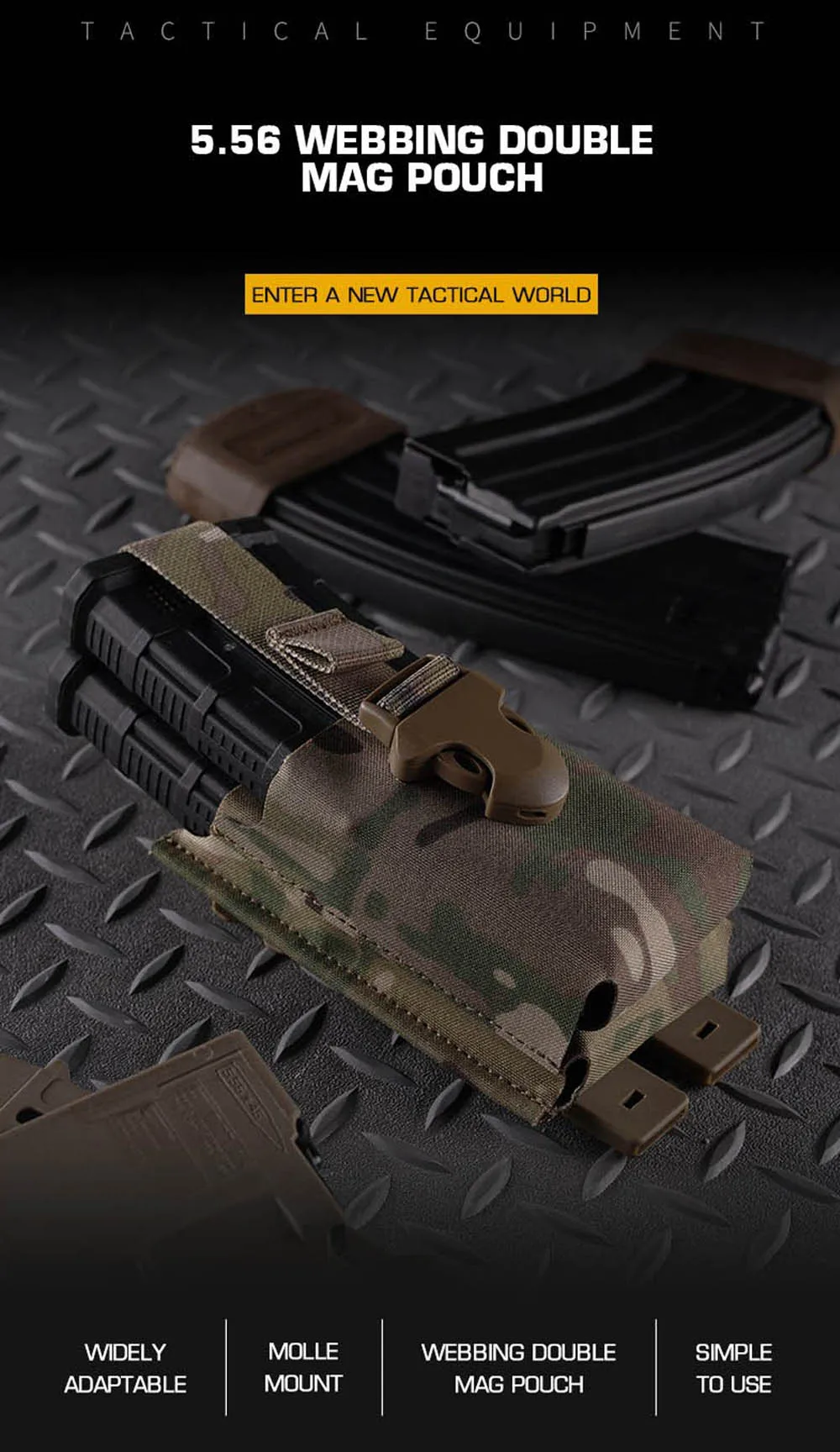 Bolsa táctica 5,56 doble para revistas M4 AR15 Mag, bolsa ligera Molle para Rifle de caza, bolsa Airsoft Mag, hebilla de correas fija