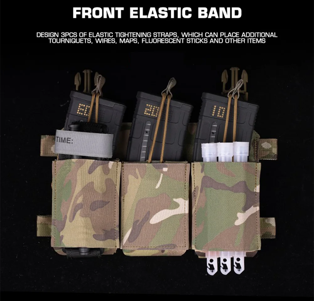 Espacio de almacenamiento adicional: Viene con 3 correas elásticas de ajuste para artículos adicionales como torniquetes, linternas, mapas y barras luminosas, aumentando su utilidad.