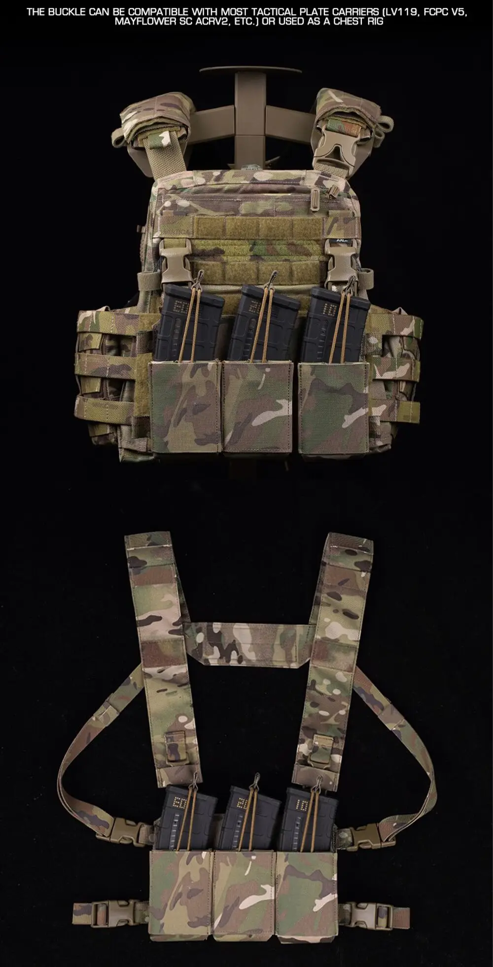 Compatible con varios equipos: Se puede utilizar con la mayoría de los portadores de placas tácticas (por ejemplo, LV119, FCPC V5, ACRV2, etc.) o como un aparejo de pecho.