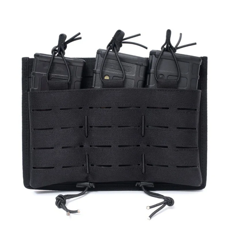 Tamaño: 25*18cm Para cuando necesite más potencia de fuego, no elija ninguna alternativa. 3 Tejas mag, para el caballero bien equipado. Esta bolsa Triple 5,56 Mag tendrá tres revistas redondas M16 estilo 5,56. El diseño superior abierto incluye una correa de retención elástica para permitir la extracción silenciosa de su revista. La bolsa también cuenta con ranuras cortadas con láser en la parte delantera y trasera, lo que permite al usuario apilar otras bolsas modulares encima. Hecho de nailon laminado y unido a cualquier correa de estilo MOLLE/PALS con los Clips de malicia incluidos. Disponible en Negro, Marrón Coyote y verde El paquete incluye: 1 * bolsa táctica para revistas