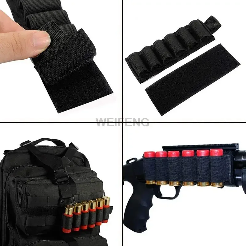 El soporte viene con un lazo adhesivo para que el receptor de su escopeta coloque el soporte de la carcasa en el costado de la pistola o en la culata.