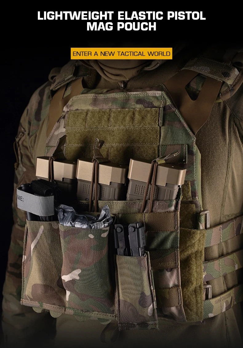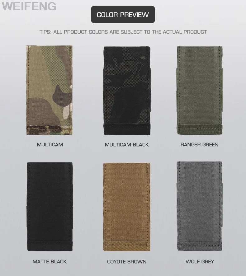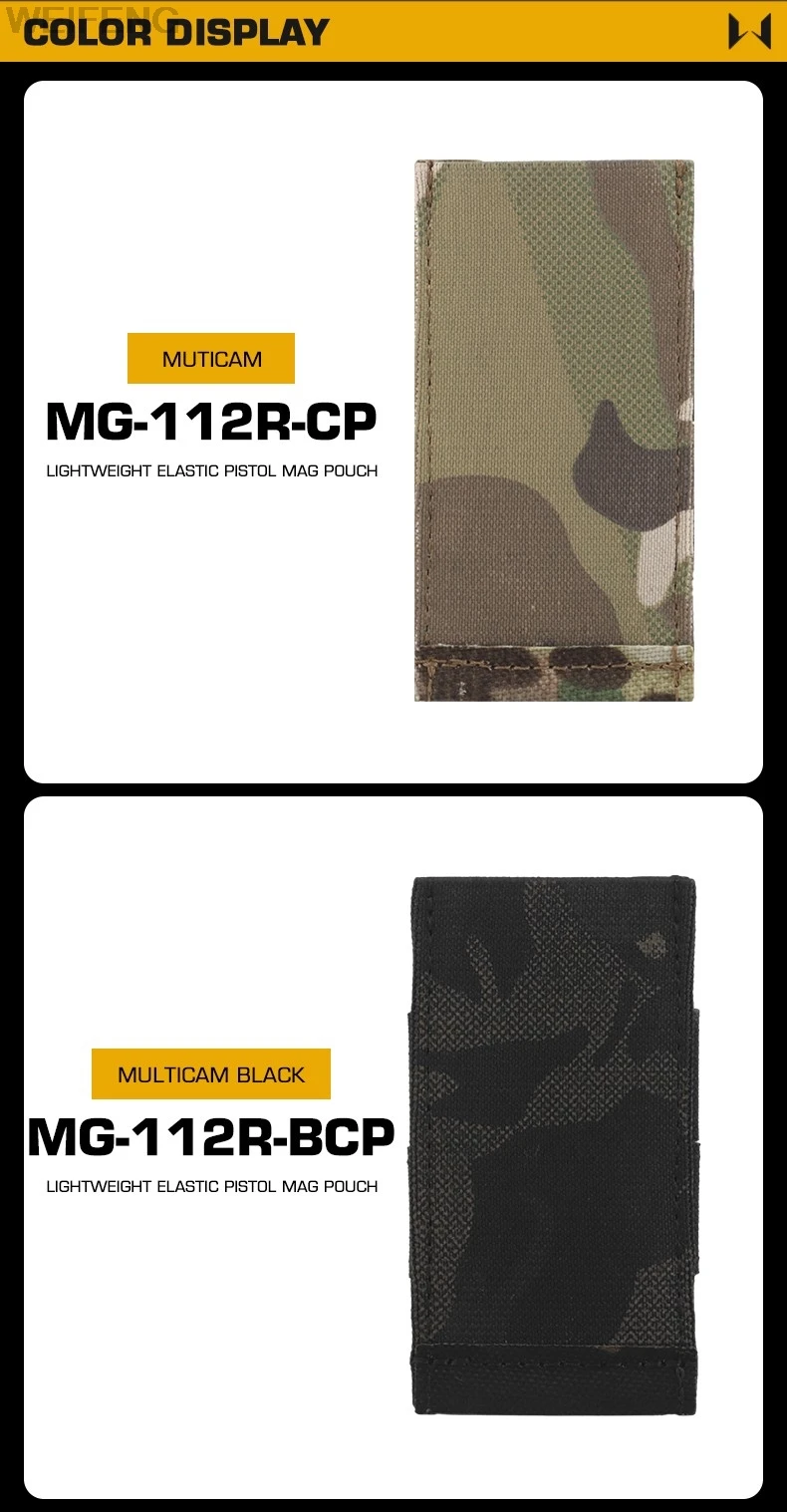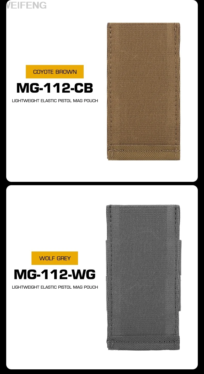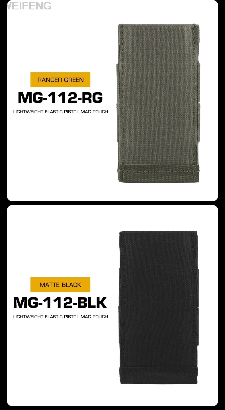 Nombre del producto: Bolsa de Mag de pistola elástica ligera Embalaje del producto: Tamaño del producto empaquetado en Bolsa: 11*6*1cm Peso neto del producto: 0.014KG Peso bruto del producto: 0.025KG Color del producto: negro mate/Multicam Black/Coyote Brown/Ranger GREEN/Wolf Grey Material:nylon