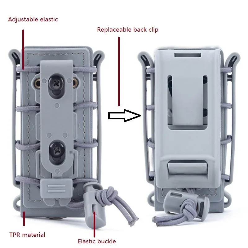 -Esta funda para cargador de pistola incluye clip de molle + clip de cinturón