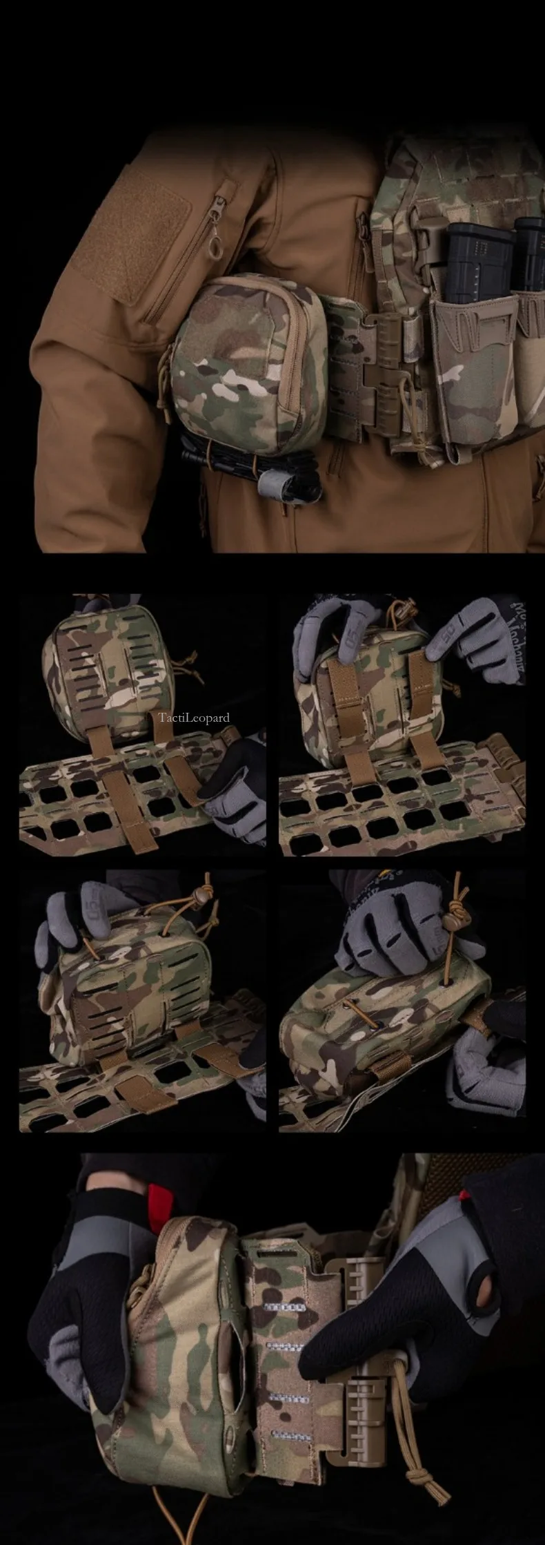 3. Accesorio MOLLE trasero (3 ranuras MOLLE Across y 3 ranuras MOLLE hacia abajo)