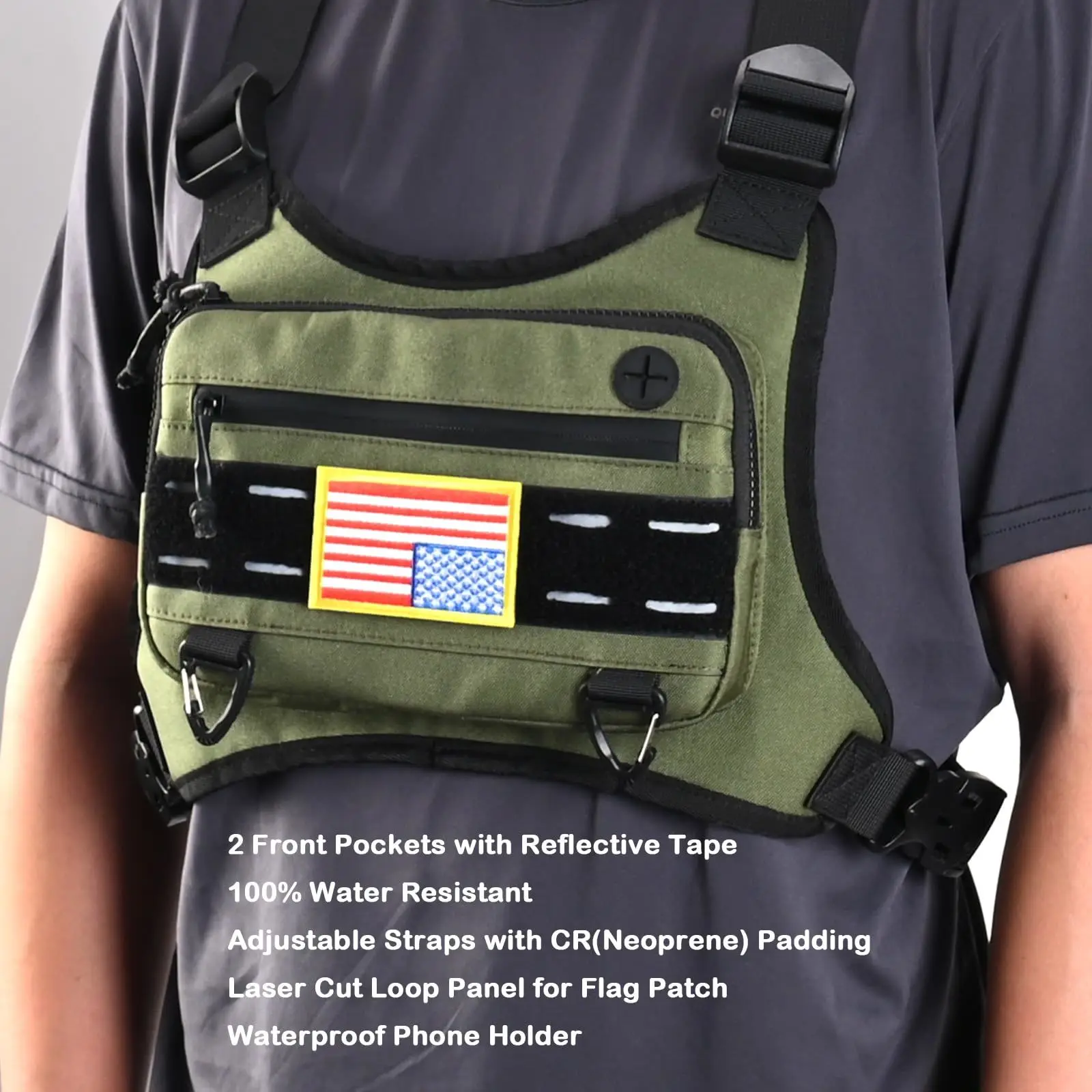 ⑤ [Contenido del paquete y garantía de calidad]: obtendrá un paquete de pecho y un parche de bandera estadounidense en un pedido y 24 meses de garantía del fabricante