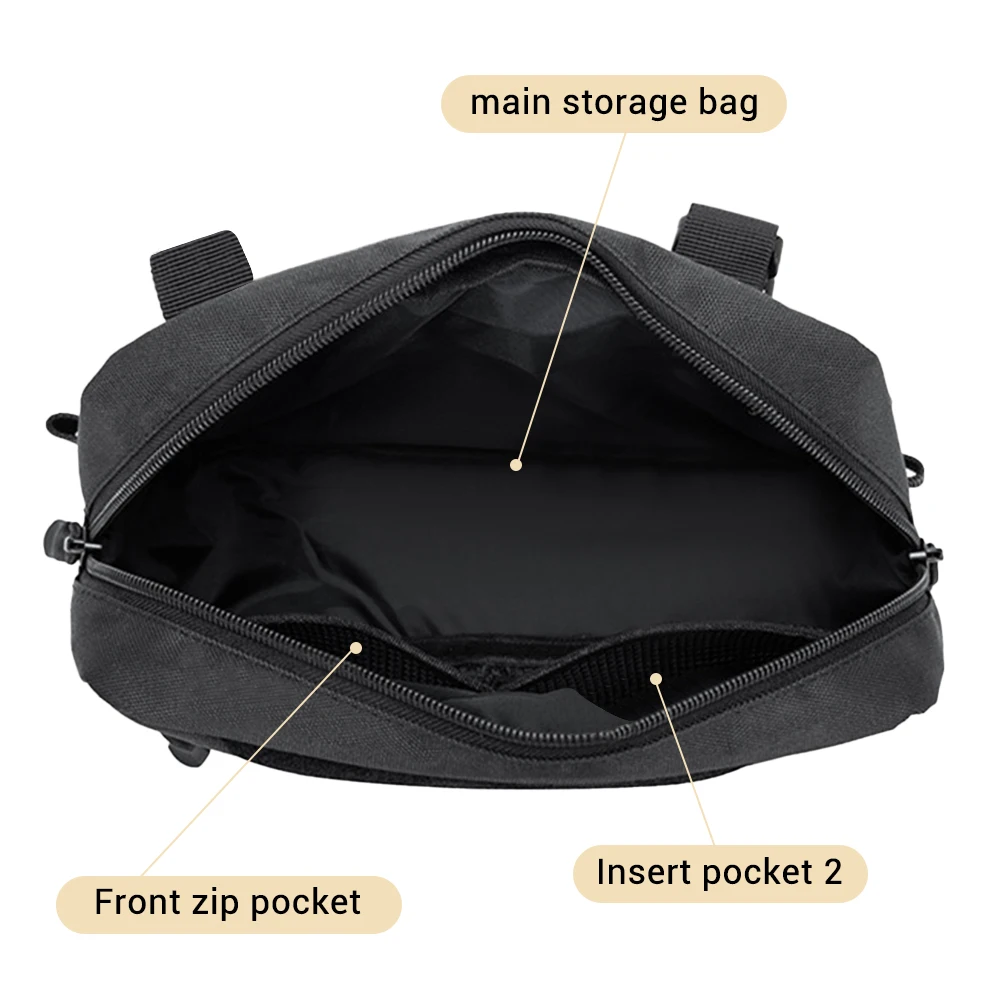 La bolsa de pecho tiene un tamaño compacto de 9,45 pulgadas de largo x 7,09 pulgadas de alto x 3,15 pulgadas de ancho. Está equipada con un sistema molle, es fácil colocar suministros adicionales según sea necesario para aumentar la capacidad de carga.