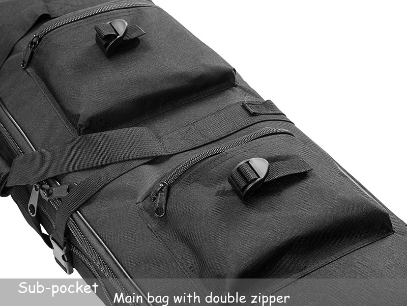 ● Método de transporte múltiple. La bolsa táctica para rifle ha sido diseñada para llevarla con un asa resistente o con dos correas ajustables para mochila.