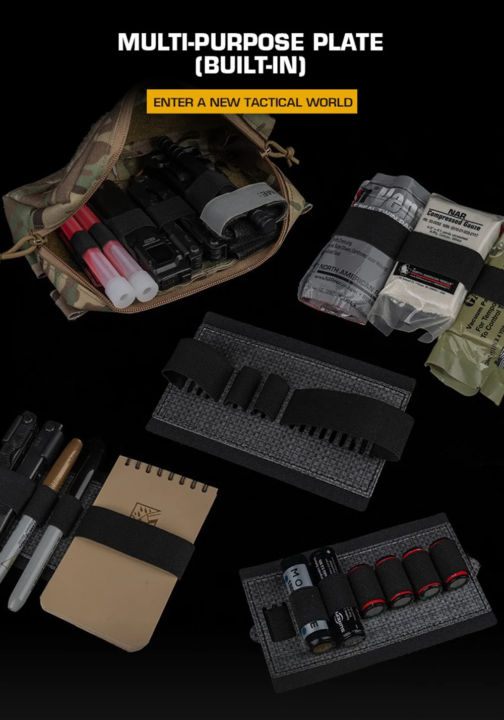 Bolsa táctica para artículos diversos, bolsa de primeros auxilios con placa multiusos, tablero de revestimiento interior, tablero de almacenamiento incorporado