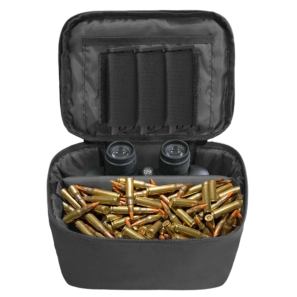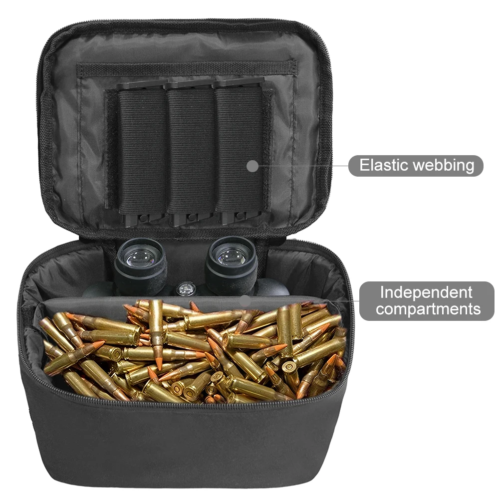 Equipado con compartimentos separados y correas elásticas para guardar diferentes tipos de municiones y revistas, evitando que se mezclen y garantizando la organización.