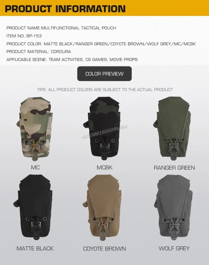 Nombre del producto: Bolsa multifuncional Color del producto:Negro mate/Verde Ranger/Marrón Coyote/MC/MCBK