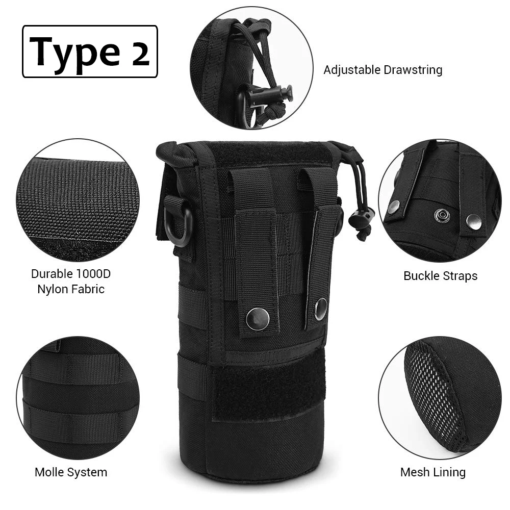 Bolsa Táctica para Botella de Agua, Bolsa Plegable Molle, Soporte para Hervidor de Agua, Accesorio para Mochila de Caza, Bolsillo para Hidratación
