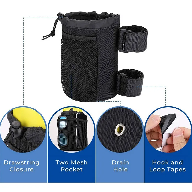 1. 600D Oxford hecho de tela, gruesa y Duradera; Moldeado de PE de 4mm, que mantiene el agua durante más tiempo. 2 es un tipo de portavasos para bicicleta que no solo sujeta botellas, pero también funciona bien para llavero/cigarrillo/cable/cargador/Banco de energía móvil/teléfono móvil/cartera/gafas de sol/máscara/auriculares si es necesario. Hay tres bolsillos, uno grande para botella y otros dos bolsillos de malla para otros artículos pequeños. El diseño de apertura con cordón elástico hace que la botella sea segura en el interior y de fácil acceso, conveniente en el camino. 3. Correas antideslizantes recién mejoradas, portavasos de rodillo grande con 2 pares de correas (10 pulgadas de largo). Se puede montar en cualquier varilla de 1,5 a 2,4 pulgadas de diámetro. Simple y estable 4. El portavasos de barra enrollable es lo suficientemente grande como para sujetar botellas de agua, botellas de agua o latas de hasta 40 oz. 5. Agujero de drenaje en la parte inferior, fácil de limpiar y lavar. 6. Es un portavasos universal. Funciona bien para ATV / UTV/silla de ruedas/cochecito de bebé/bicicleta/andador/scooter/barco marino/motocicleta/bicicleta de equilibrio, etc. Tome agua sola con usted.