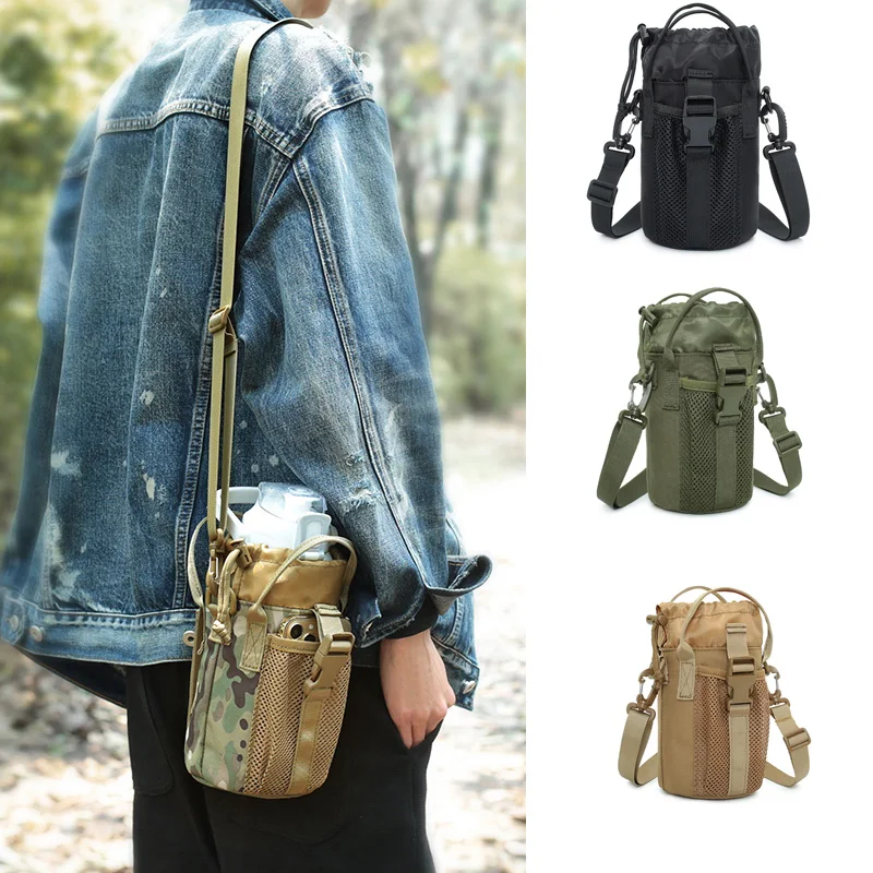 Bolsa táctica para botella de agua, bolsa de hidratación MOLLE, accesorio adicional, correa de hombro desmontable para ciclismo al aire libre