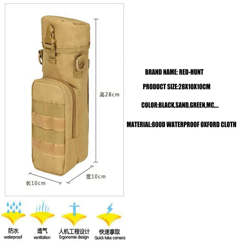 Descripción: La bolsa para botella de agua está diseñada para que lleve su botella de agua a través del sistema Molle Construido con material de nailon de alta densidad impermeable, adecuado para senderismo, mochilero, ciclismo, senderismo, etc. Diseño Molle, se conecta fácilmente al chaleco, cinturón y bolsa molle. Especificaciones: Nombre: Bolsa de hervidor Tacticla Color: Negro/Verde/bronceado/acu/cp color