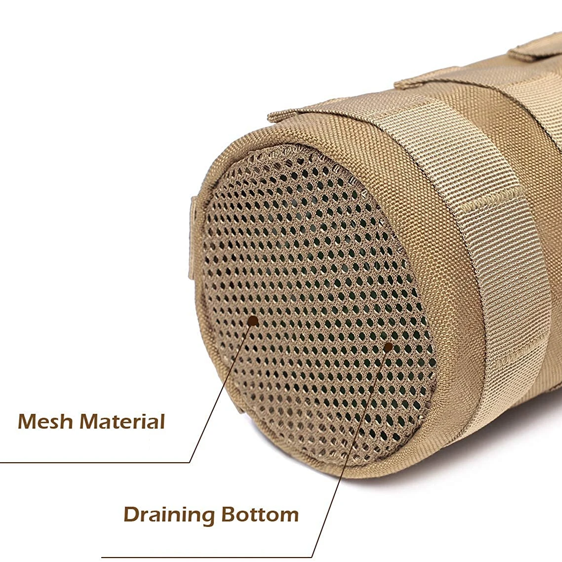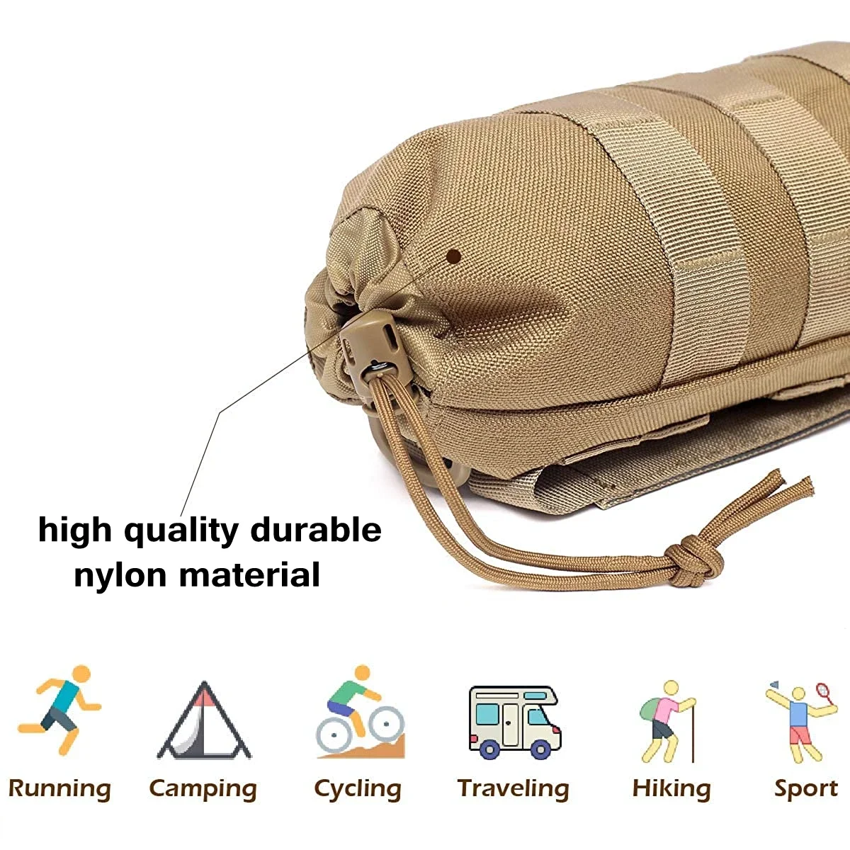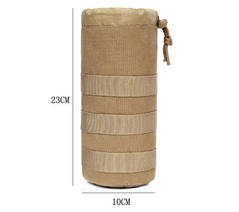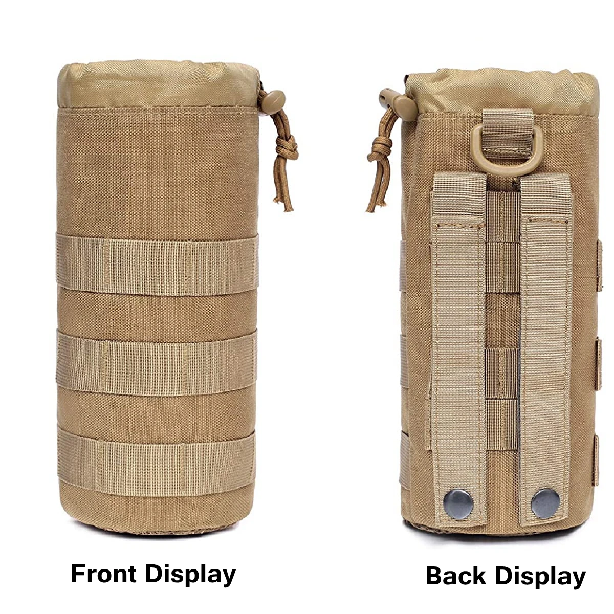 Características del producto:Nombre: Bolsa táctica para botella de aguaMaterial: Oxford 1000DVolumen: 3LCaracterísticas: gancho, anillo en D, resistente al desgaste, duradero.Tamaño: 14,3 cm x 24 cmColor: negro, verde, caqui, cp, acuOxford ripstop de alta resistencia y duradero, impermeable, resistente al rayado.resistenteCapacidad: apto para hervidor de agua de 500 ml