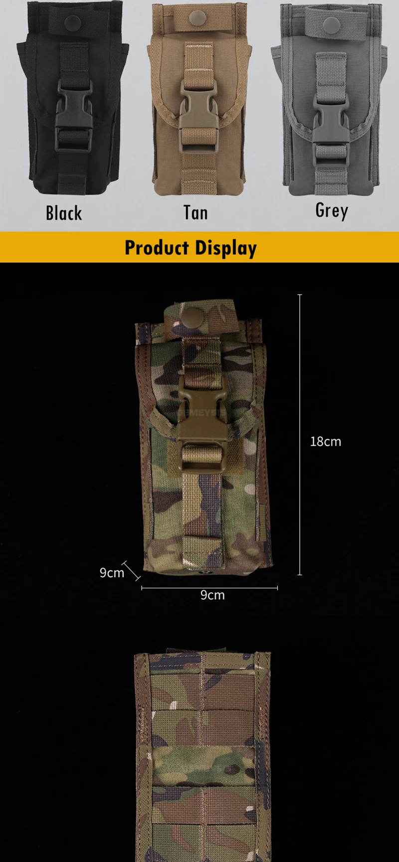 ● Diseño de correas MOLLE. Diseñado con correas MOLLE en la parte posterior, se puede colgar en chalecos o cinturones.
