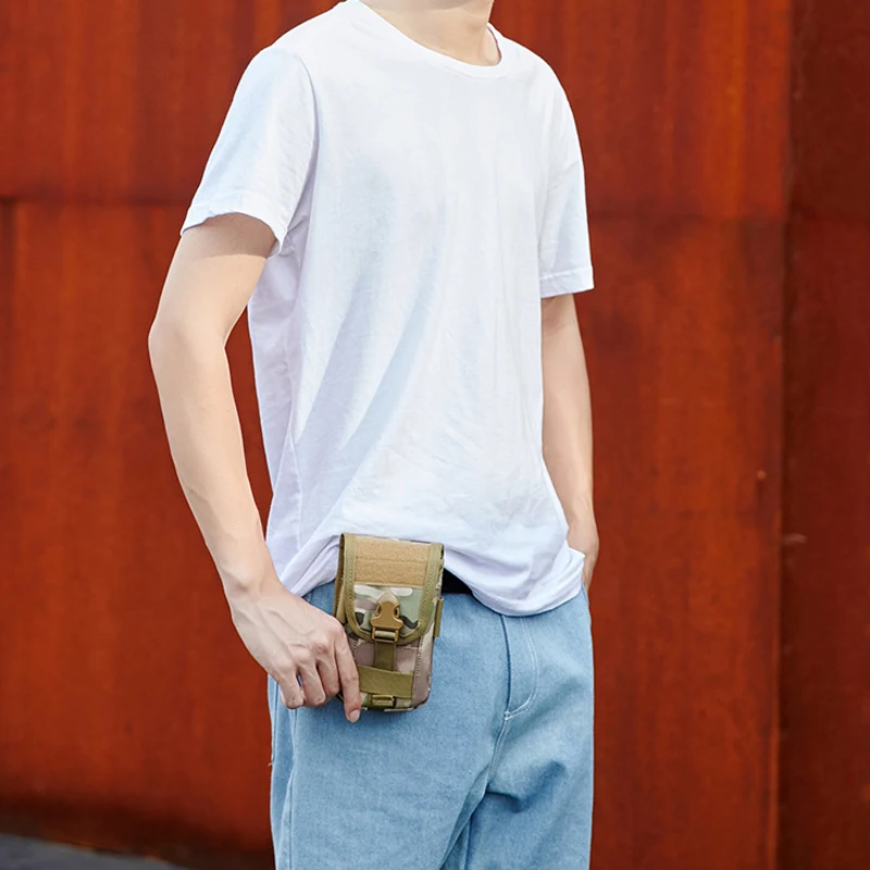 Bolsa táctica de camuflaje 1000D para correr, bolsa deportiva para teléfono, bolsillo en la cintura, accesorio Molle de doble capa, paquete de billetera para banco de energía