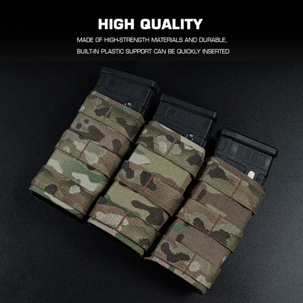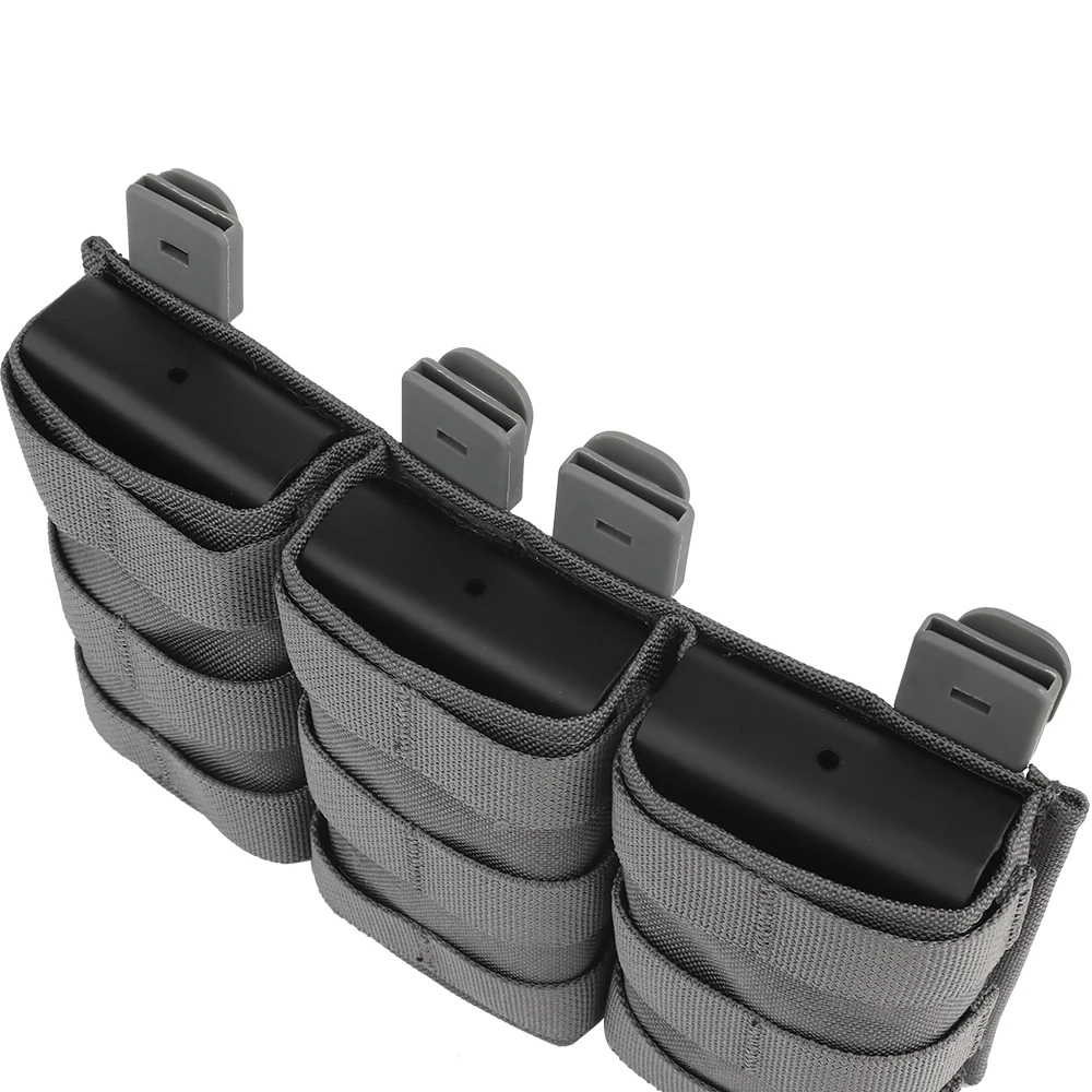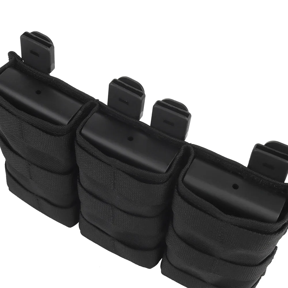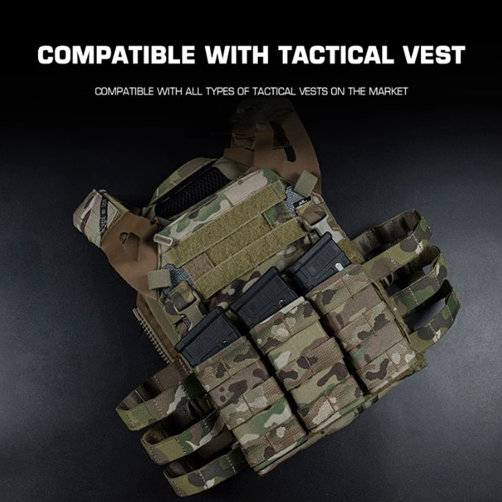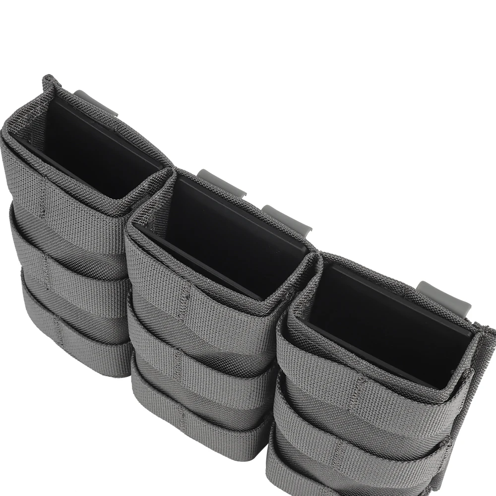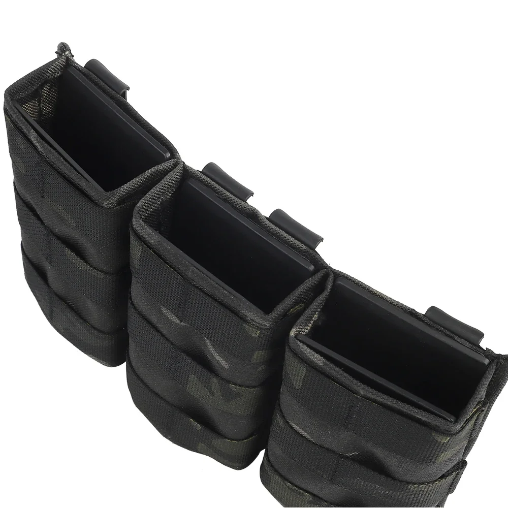 Bolsa triple para revistas 5,56 (larga) con abrazadera Kydex para chaleco táctico Molle, soporte de placa, Panel frontal M4 AR 15 Airsoft Mag Bag