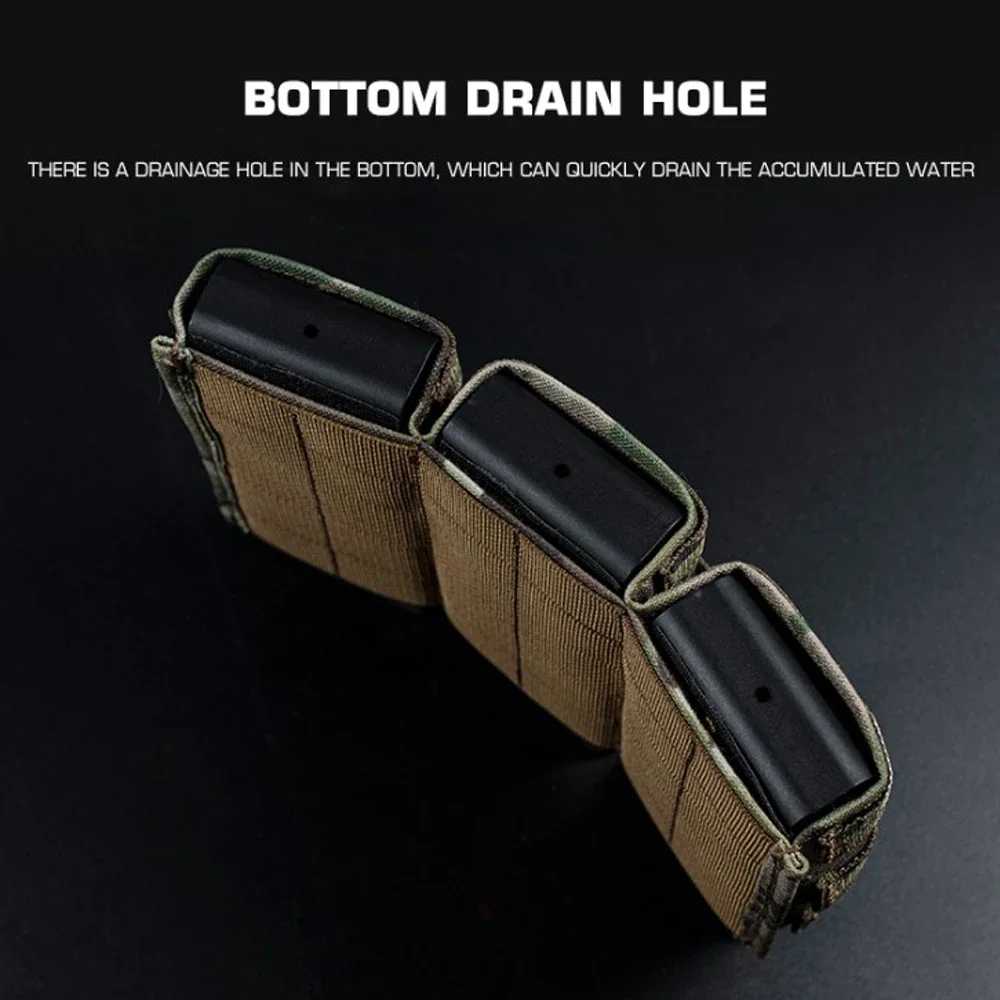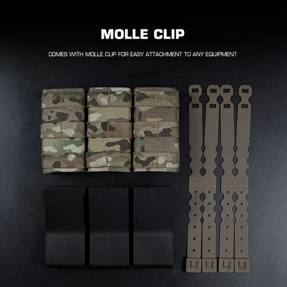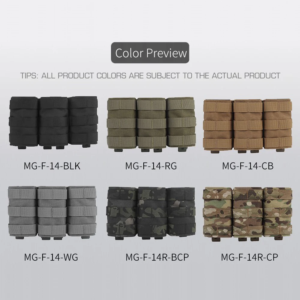 Nombre del producto: Bolsa Triple Mag Fast 5,56 (larga) Número de artículo.:MG-F-14 Tamaño del producto: 22*4*15,3 cm Peso neto del producto: 0,33 KG Material principal: tela mate/tela CORDURA. Color del producto: negro mate/gris lobo/verde Ranger/marrón coyote/Mc/BCP Escena aplicable: caza, deportes al aire libre y otros deportes tácticos de airsoft, etc.