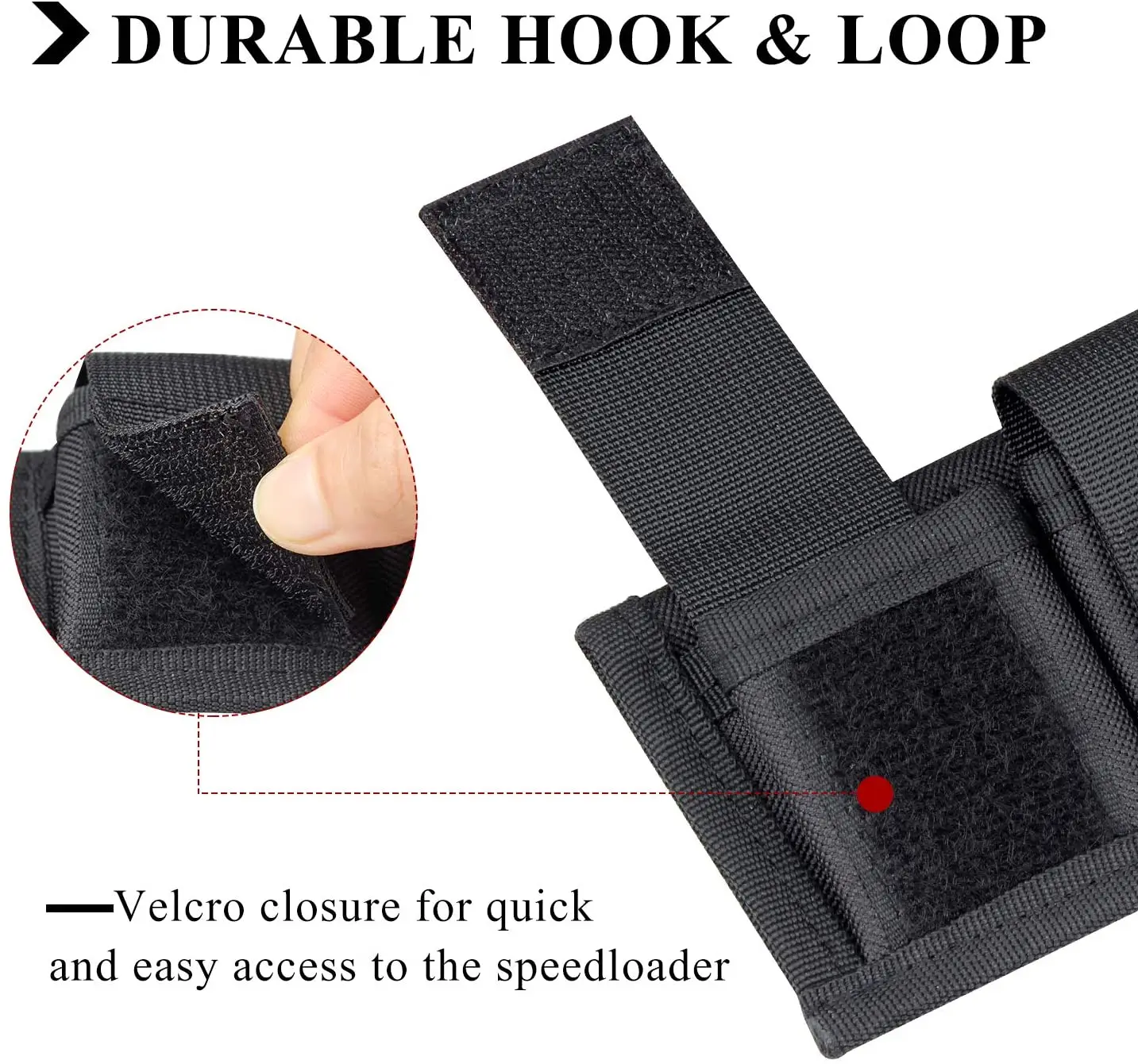 Características del producto:Se adapta a cargadores Shot Speed de 5 y 6 grados, construcción de nailon de alta densidad.Compatible con 22 Mag 44 MagColor: negro, verde, tostado, ACU, CPPeso: 40 gSostiene 2 cargadores de velocidad en la posición uno al lado del otro, que se mantienen separados por el divisor de caja.Se ajusta a cinturones de hasta 2,5 pulgadas, muy ocultos debajo de la ropa.Sujetadores con solapa, diseño muy fácil y rápido de liberar.Speedloader es para visualización y no está incluido.Apto para: cargadores de velocidad Taurus 85,Cargador de colt HKS.45,Cargador magnum.44,Cargadores de velocidad de disparo 7 para cargadores de velocidad Taurus 617 en 6,66,.357, .57 cargadores de velocidad magnéticas,Cargadores de velocidad especiales S&W 38. Admite la mayoría de cargadores de velocidad desde.38 hasta.45 Colt.
